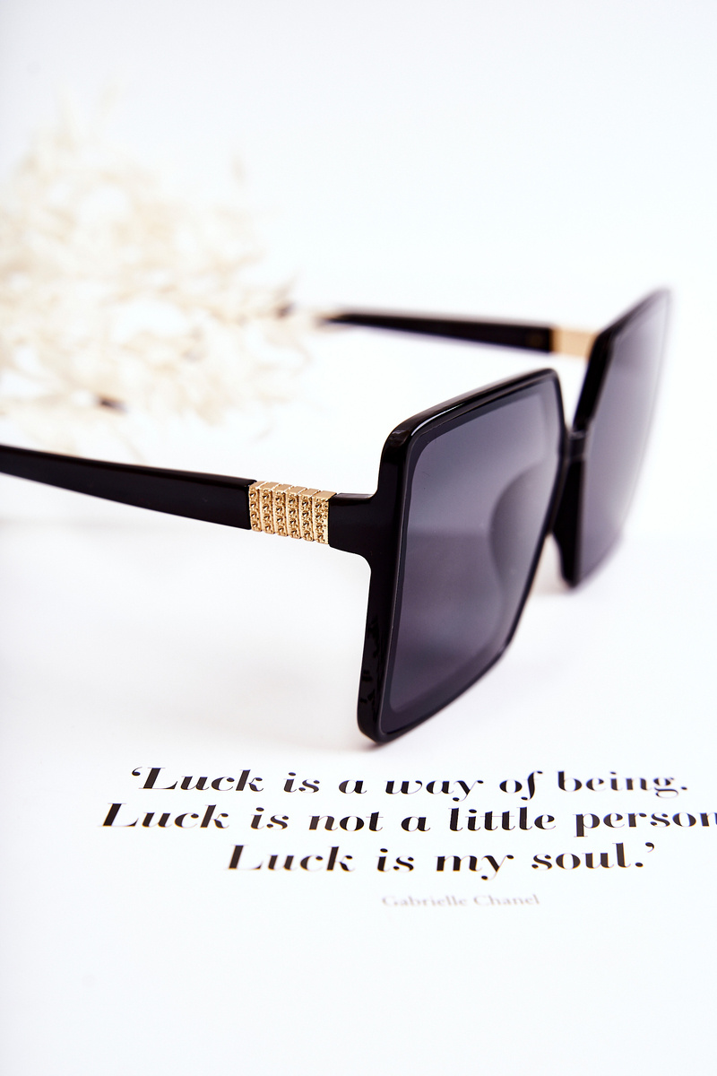Жіночі квадратні сонцезахисні окуляри V130032 Чорно-золоті