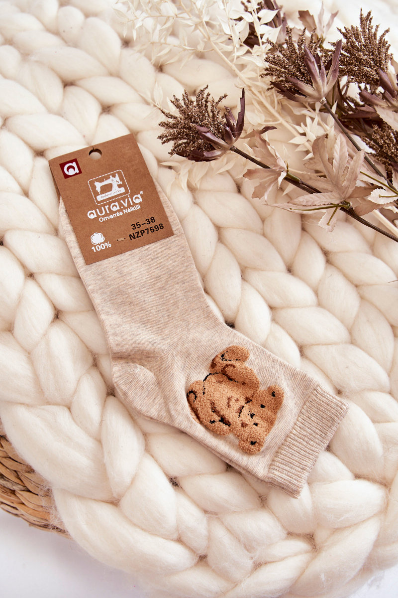 Жіночі класичні бавовняні шкарпетки з ведмедиком Бежеві