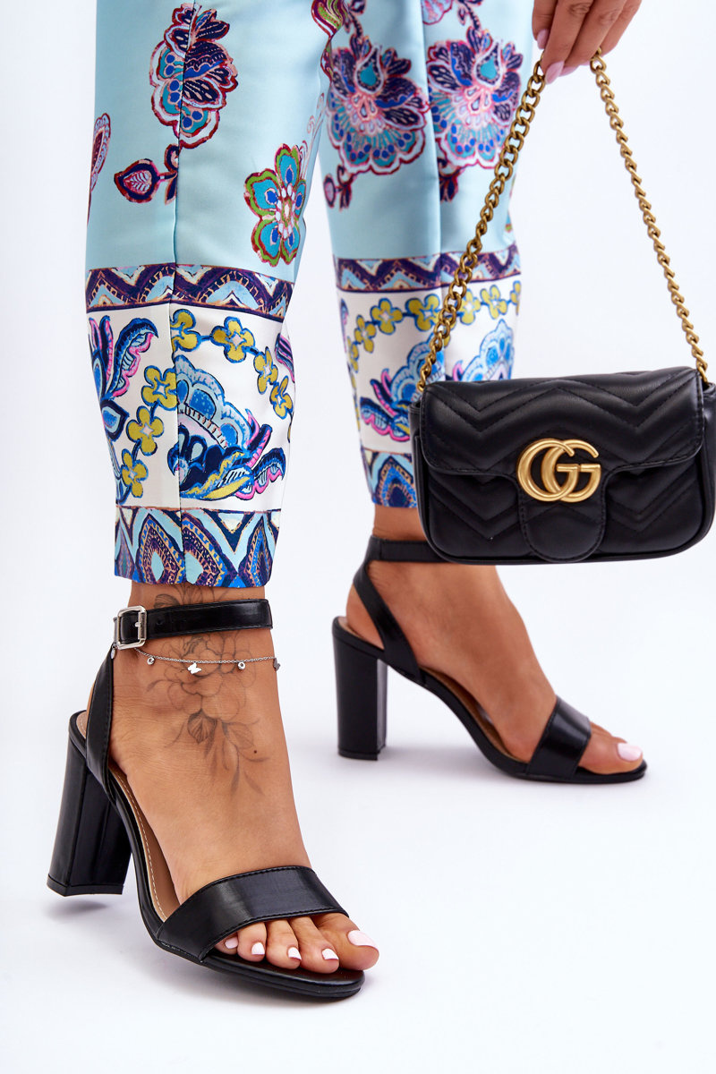 Жіночі класичні босоніжки на підборах Чорні батони