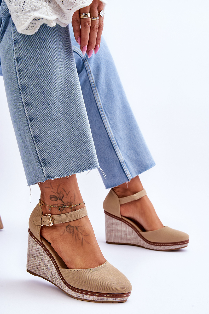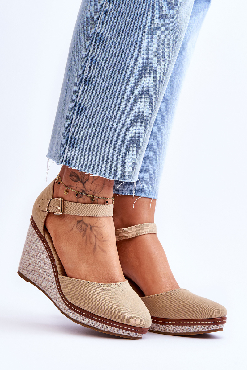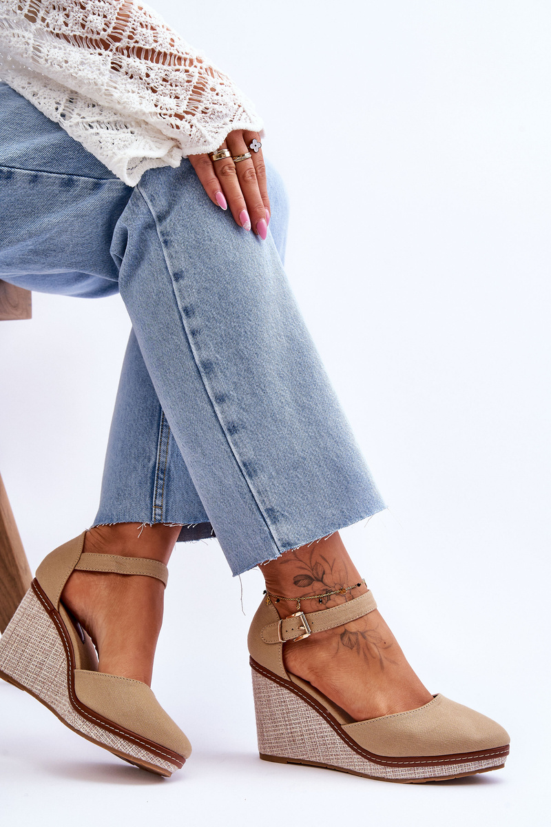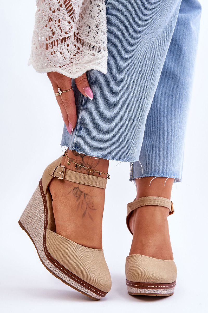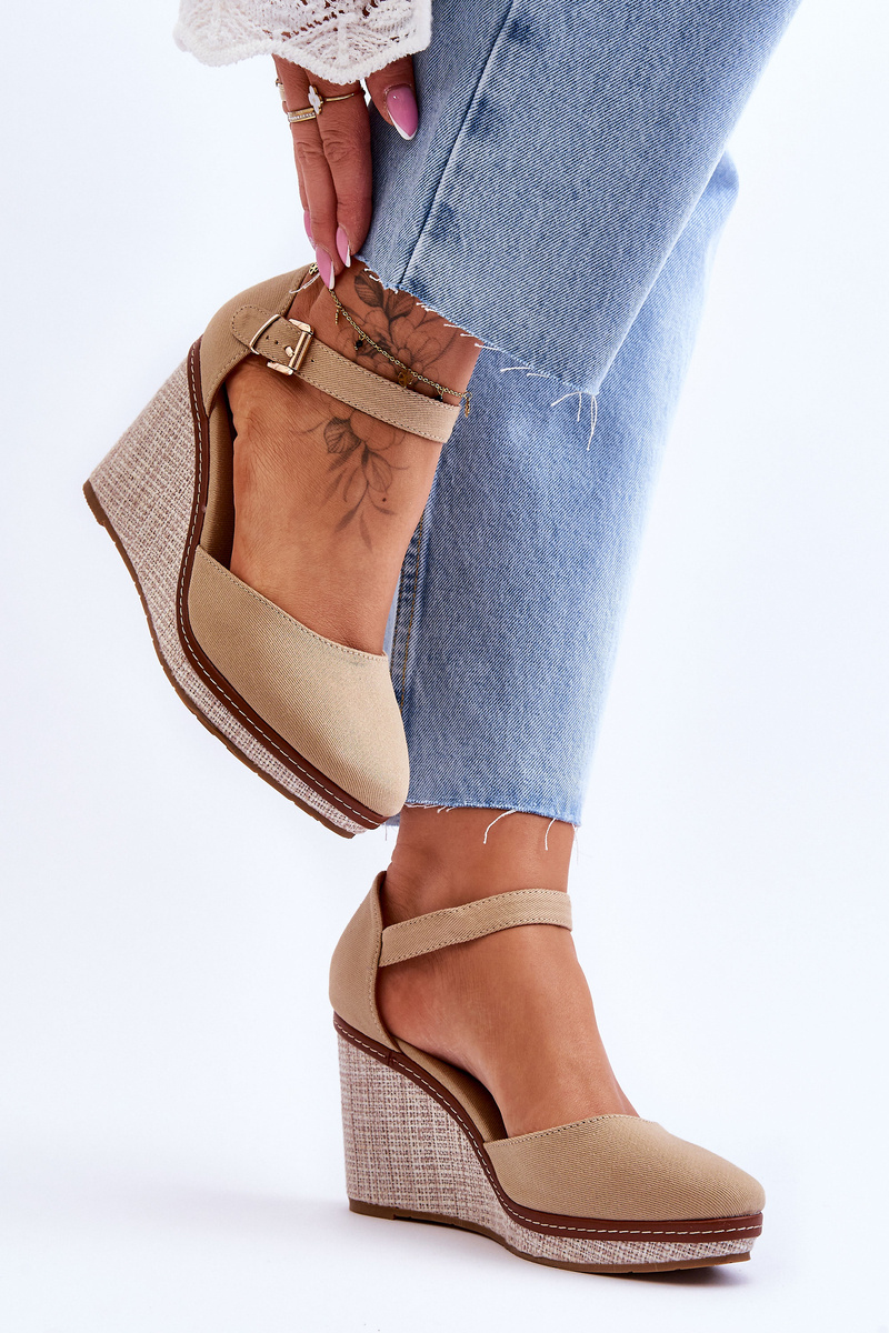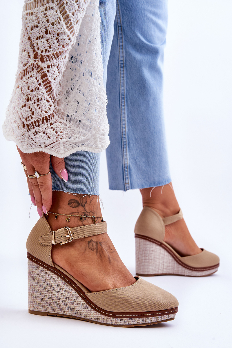 Жіночі класичні босоніжки на танкетці темно-бежевого кольору Malani