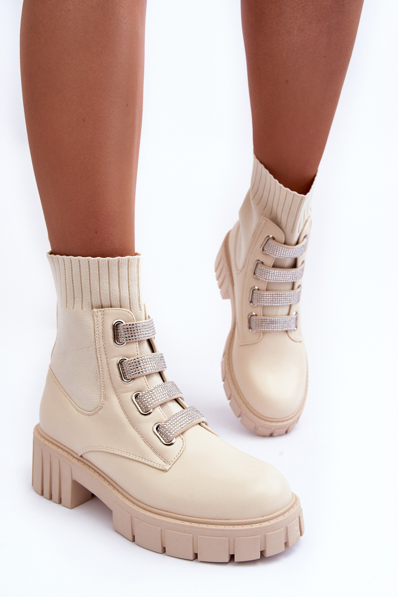 Жіночі класичні броги з еластичним верхом бежеві Kasseis