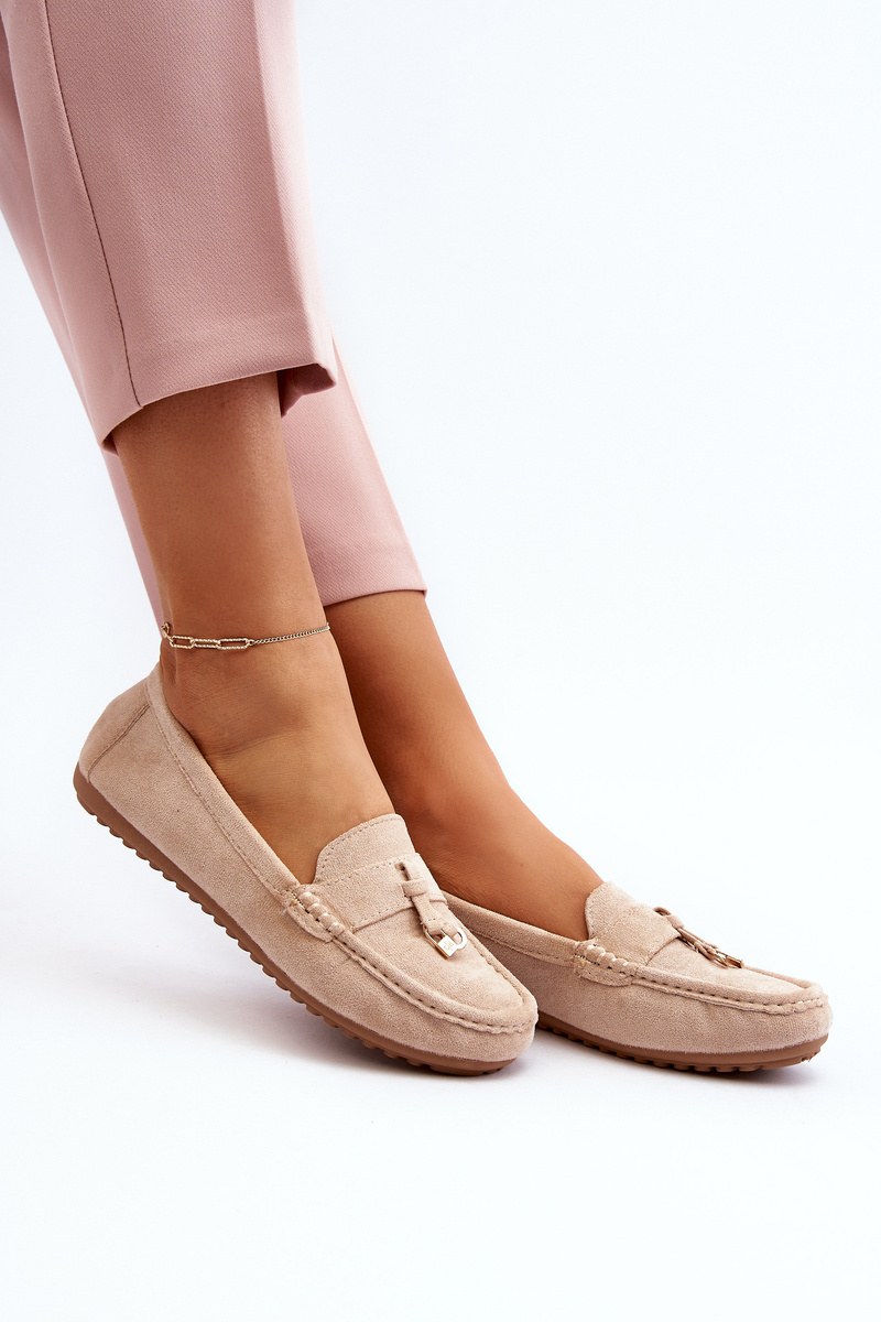 Жіночі класичні замшеві мокасини Ontala бежевого кольору