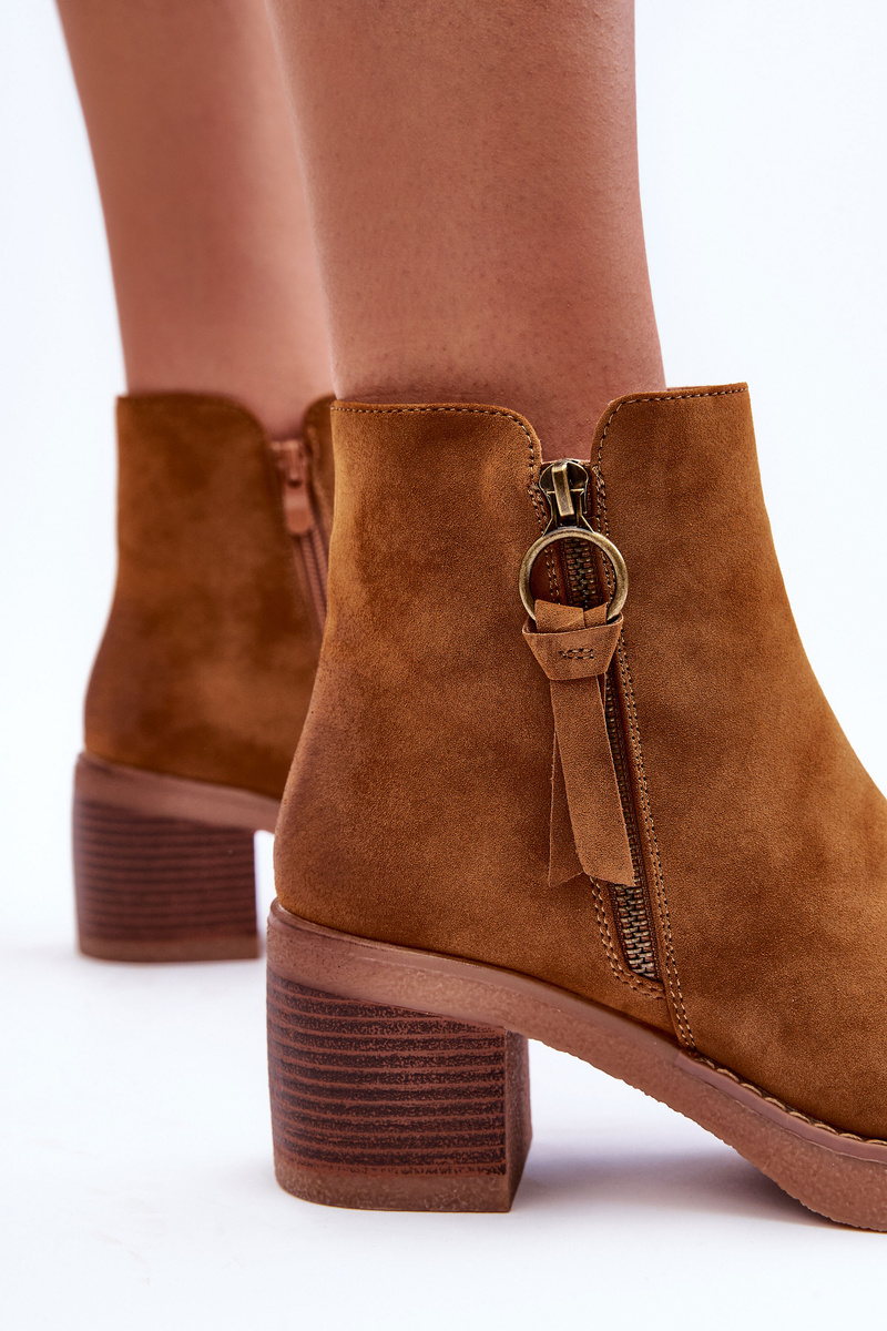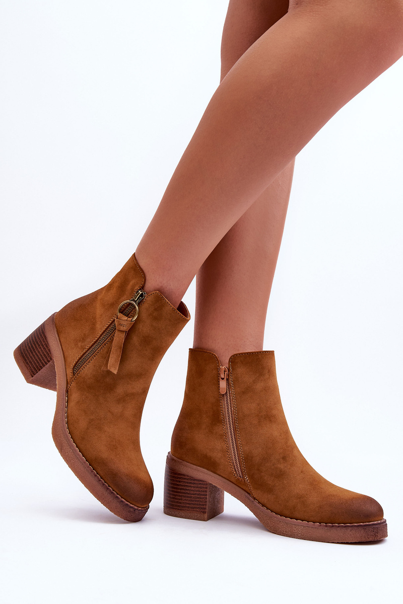 Черевики жіночі виготовлені з еко замші. Комплект на платформі та каблуці. Ця модель має закруглений носок і застібку збоку. Утеплені взуттєвою ковдрою. Додаткова блискавка на зовнішній стороні взуття не відкривається. Чоботи на підборах – відмінний вибір для осіннього образу. Не чекайте, поки вони зникнуть, і купуйте вже сьогодні! Вибираючи розмір, орієнтуйтеся на таблицю розмірів.
