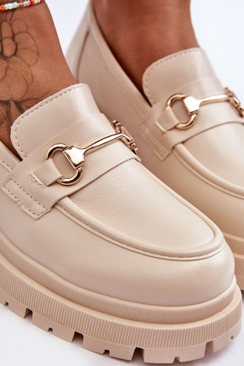 Жіночі класичні мокасини на платформі бежеве диво