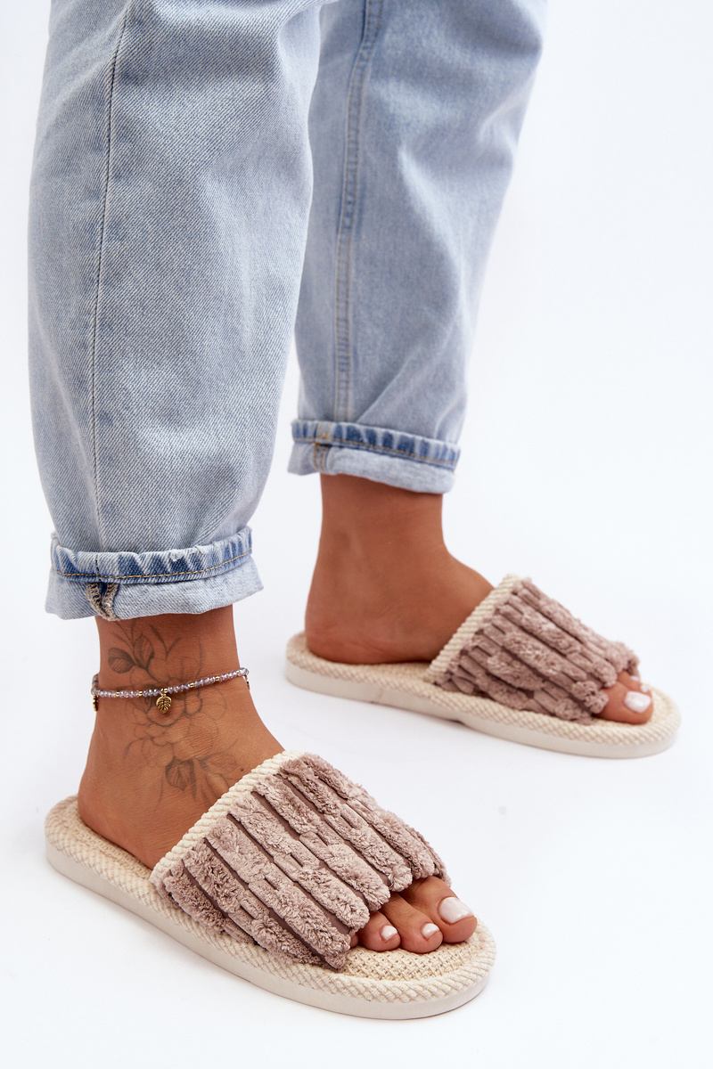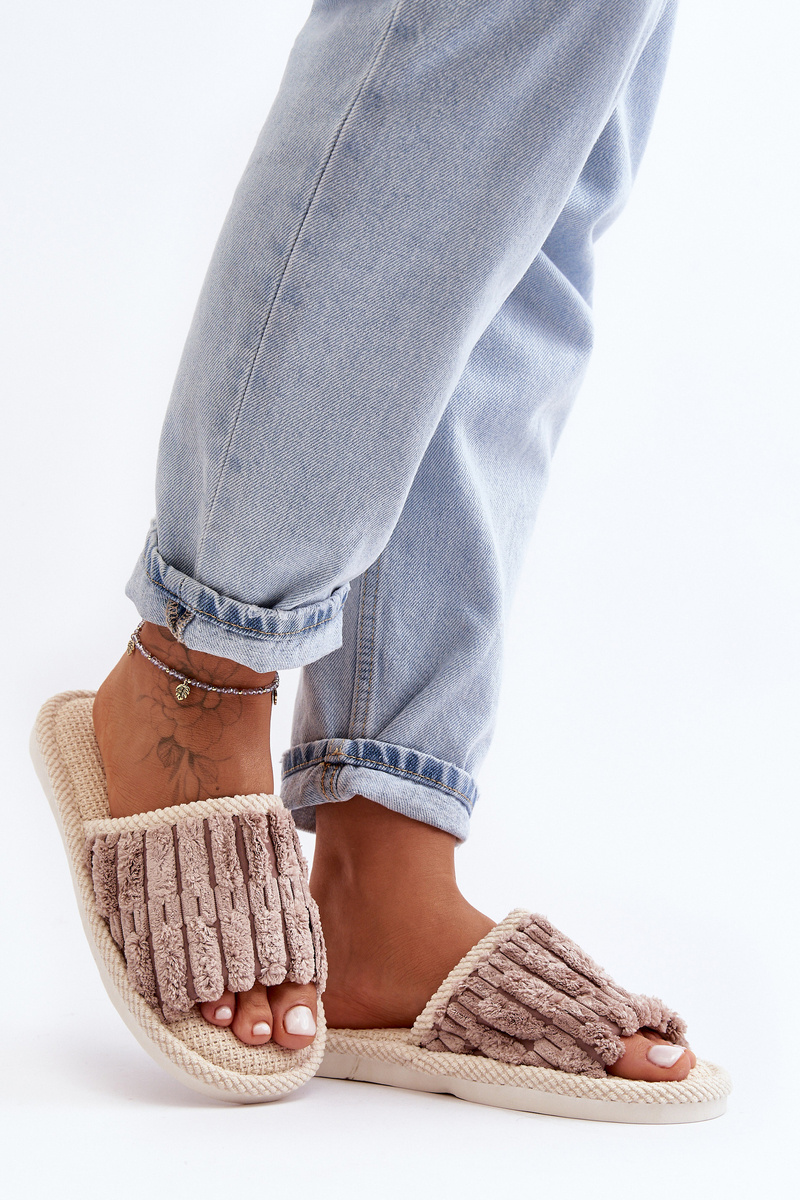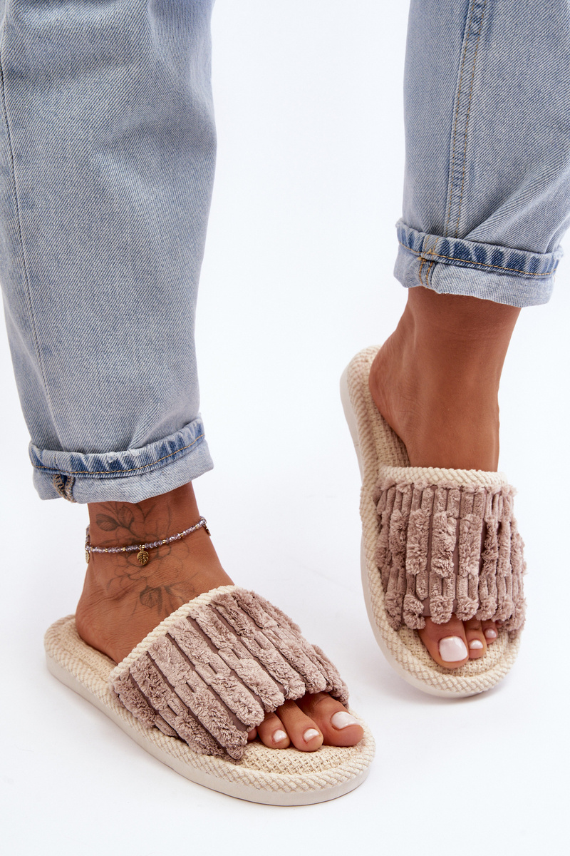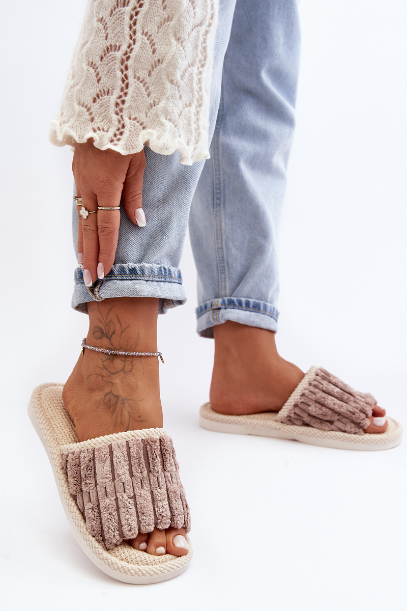 Зручні тапочки на плоскій гумовій підошві – ідеальний вибір для прохолодних днів. Виготовлені з м'якого штучного хутра, вони дарують тепло і комфорт. Спереду на тапочках є мила нашивка. Відкриті пальці ніг. Чудово підходить для відпочинку вдома! Вибираючи розмір, зверніться до таблиці розмірів.