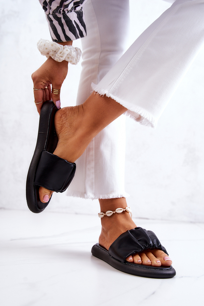 Елегантні жіночі тапочки мають м'яку устілку з екошкіри. Елегантні волани з еко шкіри роблять взуття справді чудовим. Ніжна платформа і підошва з пластику. Ці тапочки доповнять багато літніх стилізацій! Вони чудово підійдуть до стилю бохо. Вразіть своїм зовнішнім виглядом і придбайте їх сьогодні! Обов'язково перегляньте всю нашу колекцію жіночих тапочок. При виборі розміру скористайтеся таблицею розмірів.
