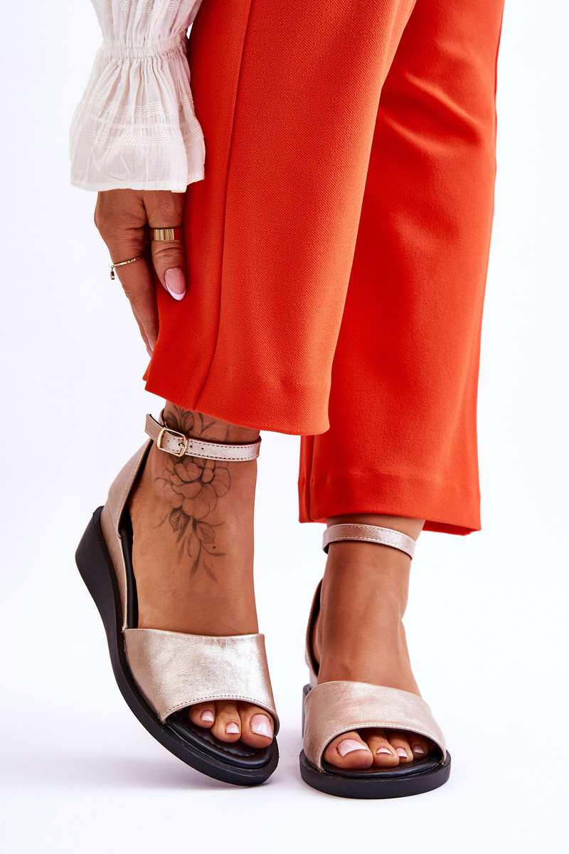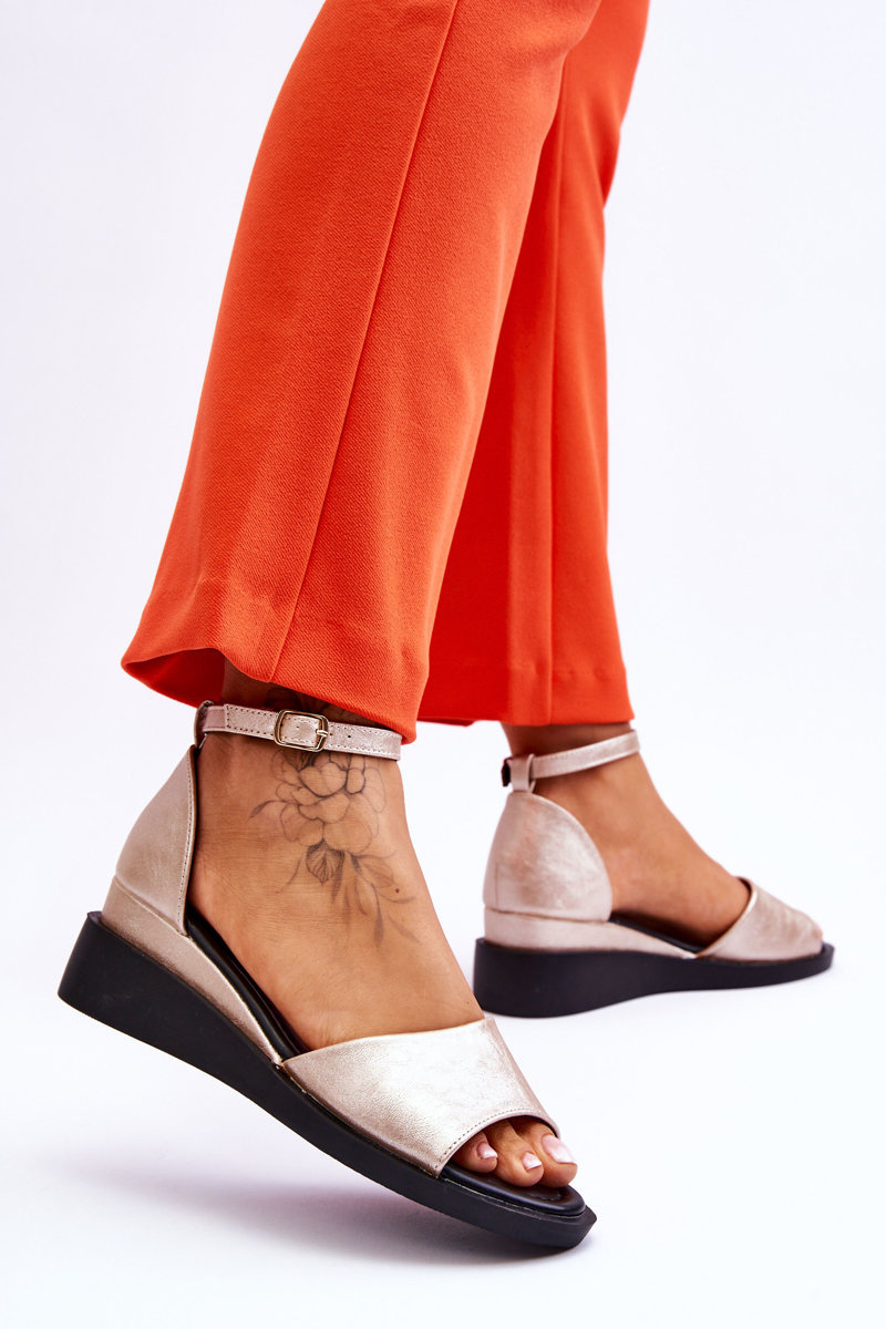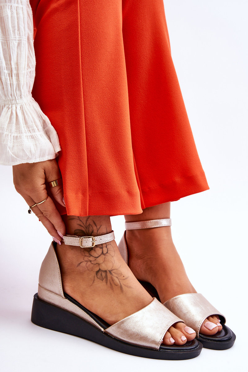 Жіночі класичні шкіряні босоніжки на танкетці Gold Truett