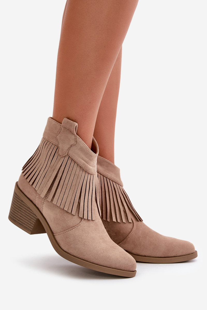 Жіночі ковбойські чоботи на блискавці з еко-замші, бежеві S.Barski HY42-127