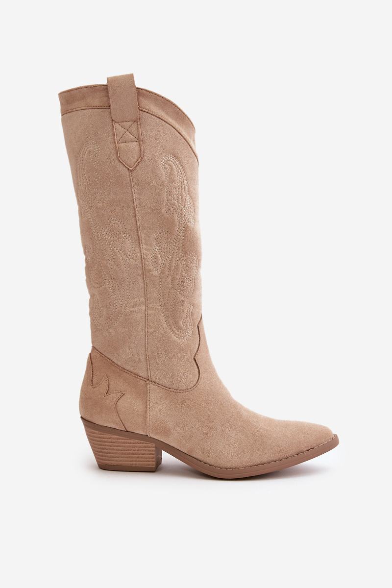 Жіночі ковбойські чоботи на низькому каблуці з бежевої штучної замші Ligelia