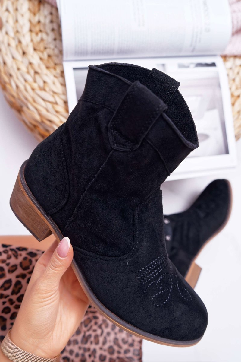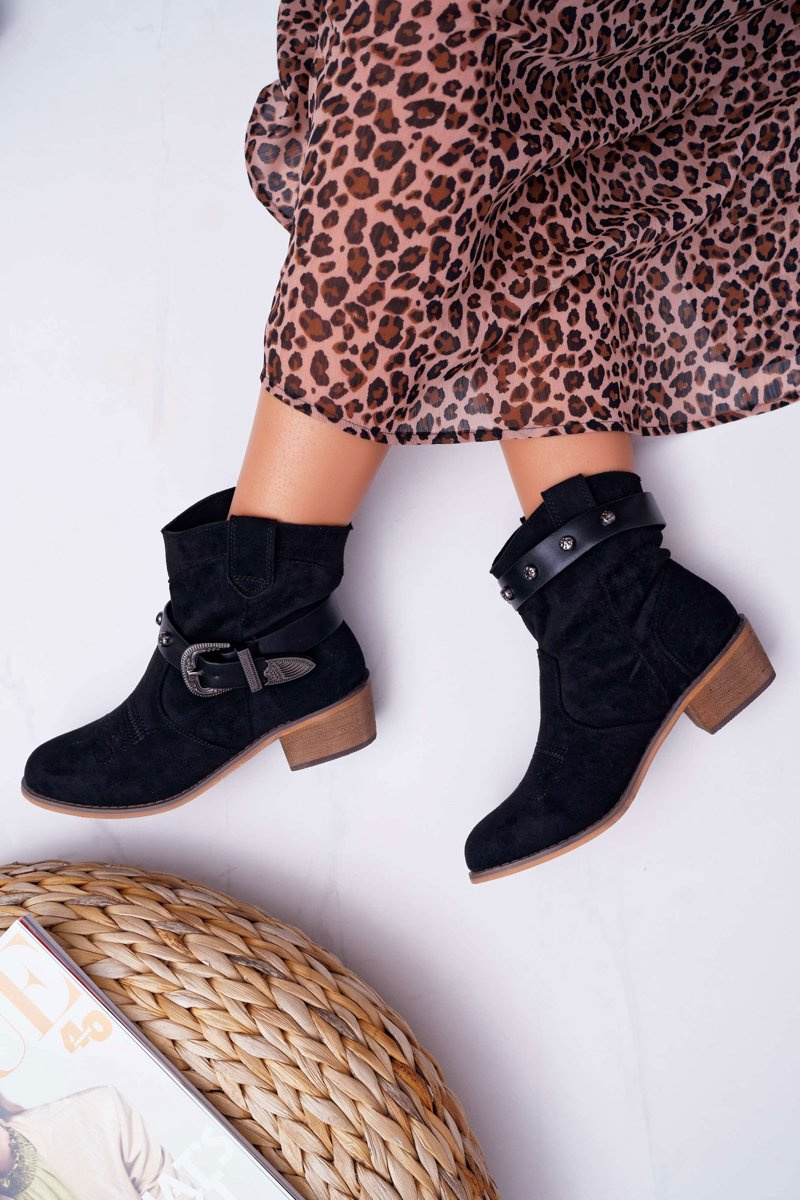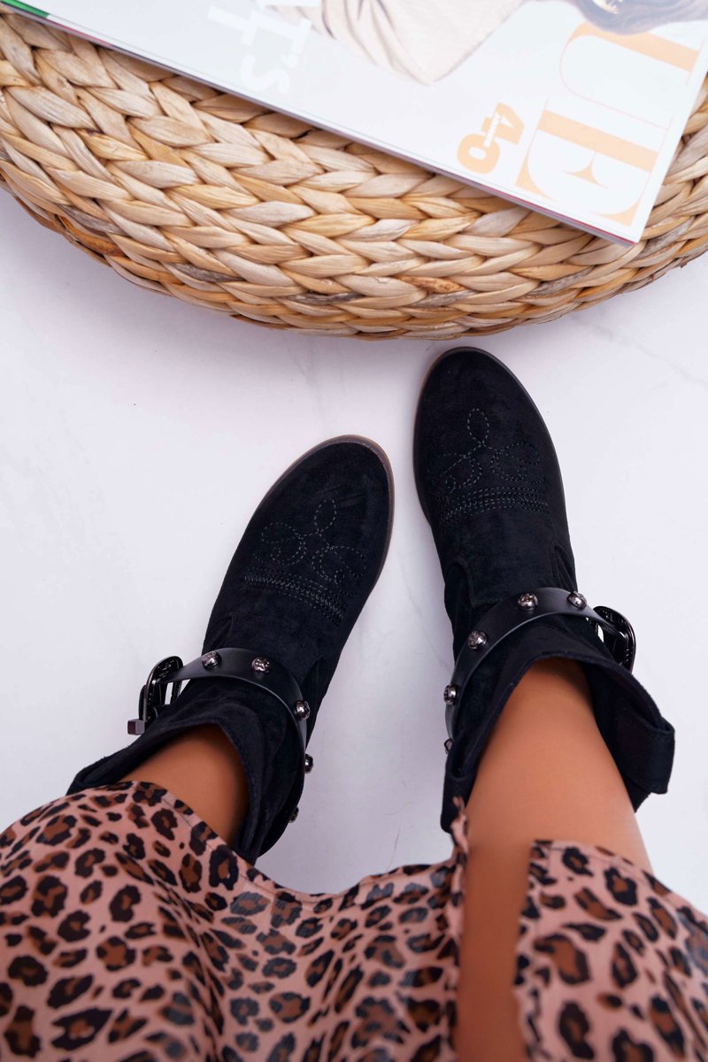 Жіночі ковбойські чоботи на плоскому каблуці з пряжкою Чорні Ewell