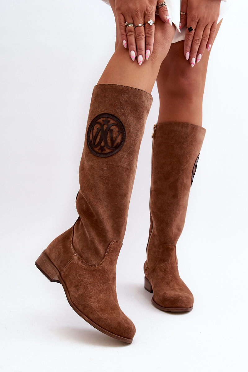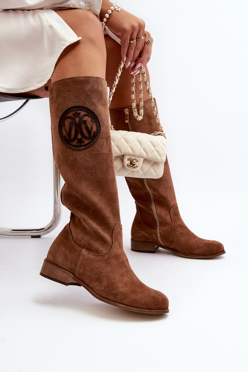 Жіночі коричневі замшеві чоботи вище коліна Zazoo 3367/2