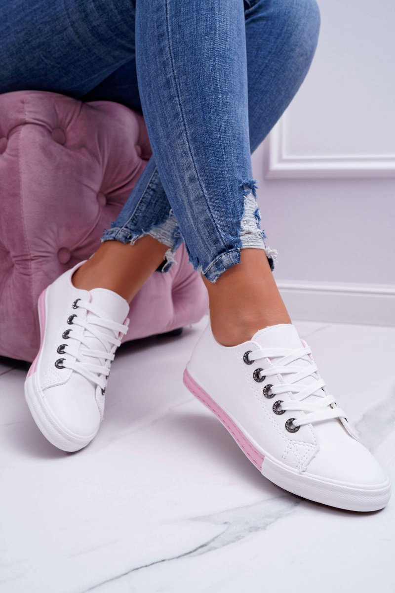 Жіночі кросівки біло-рожеві на ремінці Nigrid2