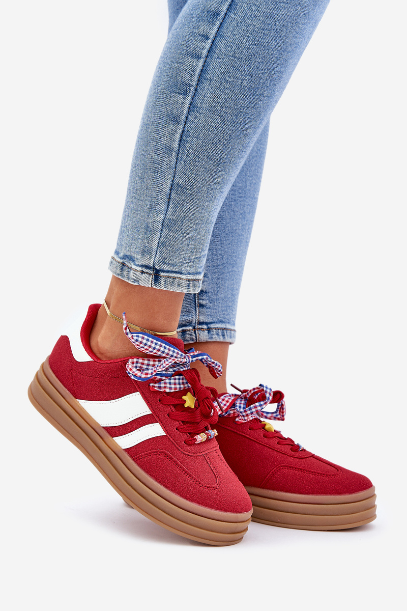Модні кросівки, виготовлені з еко-замші, є чудовою пропозицією для любительок комфорту та стильного вигляду. Розміщені на платформі, вони не лише додають кілька сантиметрів зросту, а й чудово підкреслюють сучасний характер взуття. Шнурівка була оздоблена милими значками, які надають дівочого шарму та оригінальності. Вони ідеально підходять як для повсякденних образів, так і для зустрічей з друзями. Будь ласка, зверніться до розмірної сітки при виборі розміру.