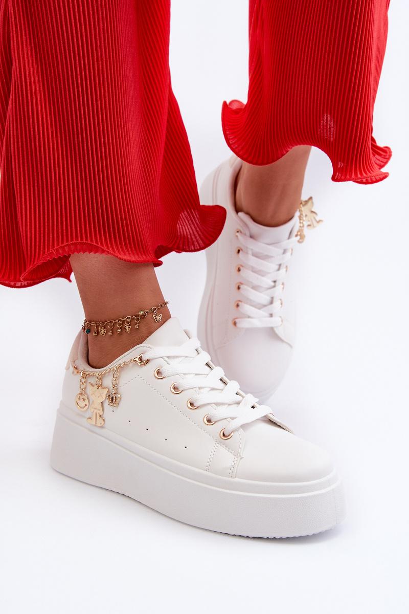 Жіночі кросівки з еко шкіри. Встановити на платформу. Прикрашений милими шармами з ланцюжком, які створюють тонкий і стильний акцент. Ця модель стане відмінним вибором для жінок, які цінують не тільки моду, але також комфорт і оригінальність. Обираючи розмір, орієнтуйтеся на таблицю розмірів.