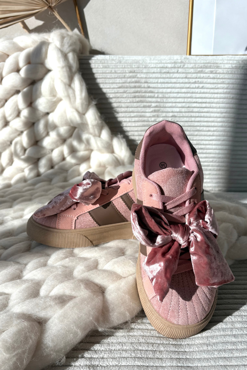 Жіночі кросівки з замшевим бантом рожеві Ashlyn