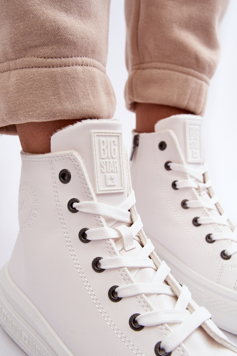 Жіночі кросівки бренду BIG STAR на платформі з гумового матеріалу. Виготовлена ​​з еко шкіри. Застібаються на блискавку і додатково мають шнурки. Зсередини утеплений хутром. Нога затверділа. Верхня доходить до щиколотки. Перегляньте всю нашу колекцію взуття BIG STAR. Вибираючи розмір, зверніться до таблиці розмірів.