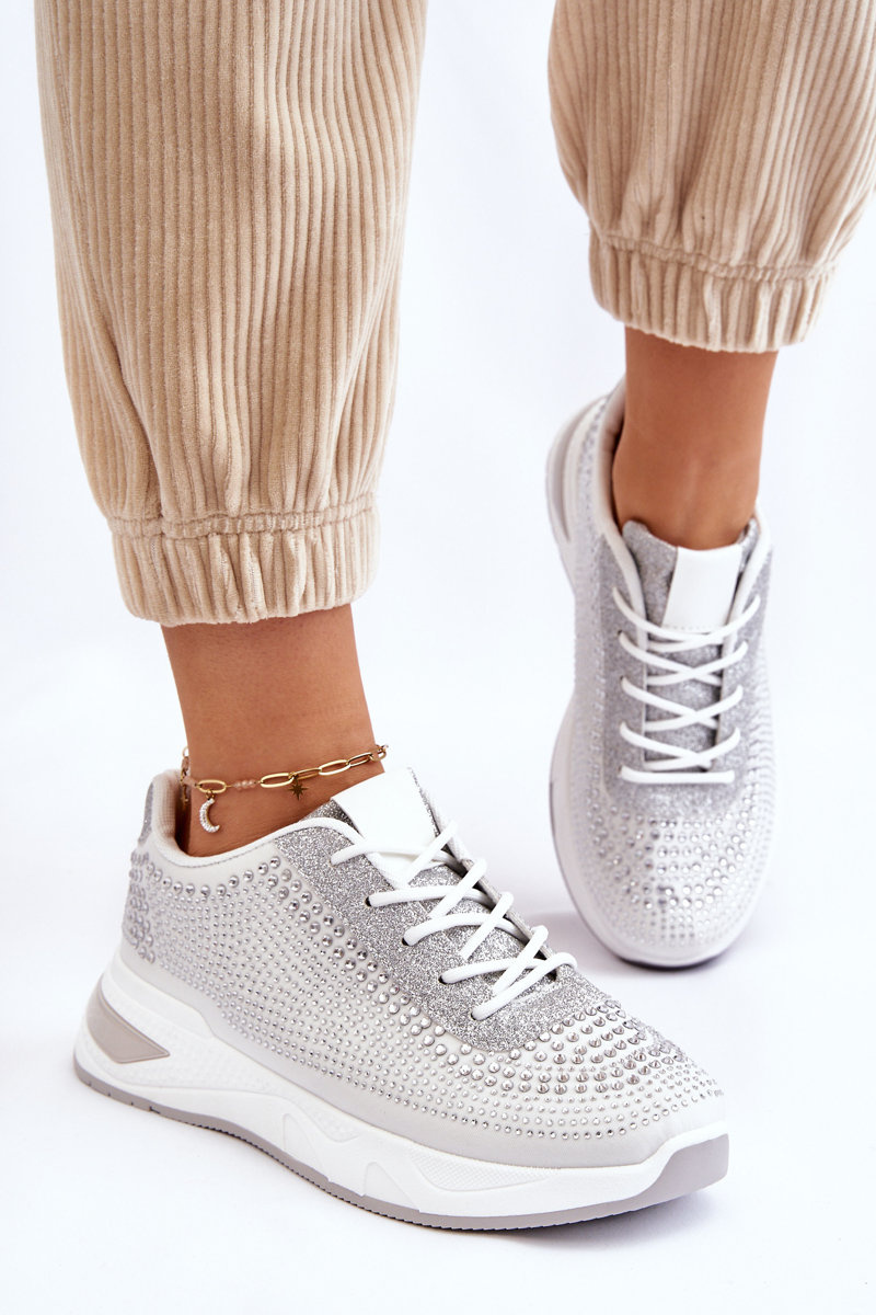 Класичне, жіноче спортивне взуття виготовляється з текстильного матеріалу. Крім того, вони мають прикраси у вигляді страз, що імітують циркони. Їх поставили на перон. Модель має класичну шнурівку. М'яка вставка з матеріалу забезпечить комфорт під час використання. Ви обов'язково повинні їх мати! Обираючи розмір, орієнтуйтеся на таблицю розмірів.