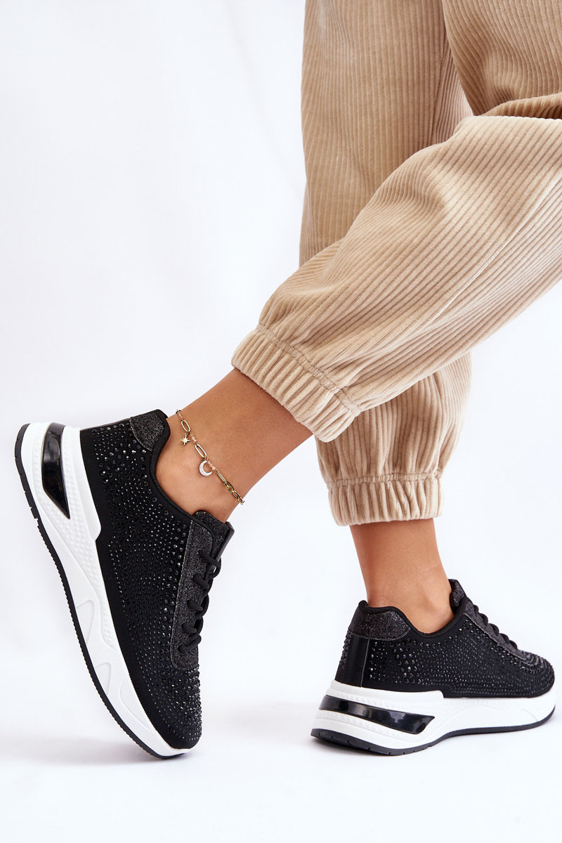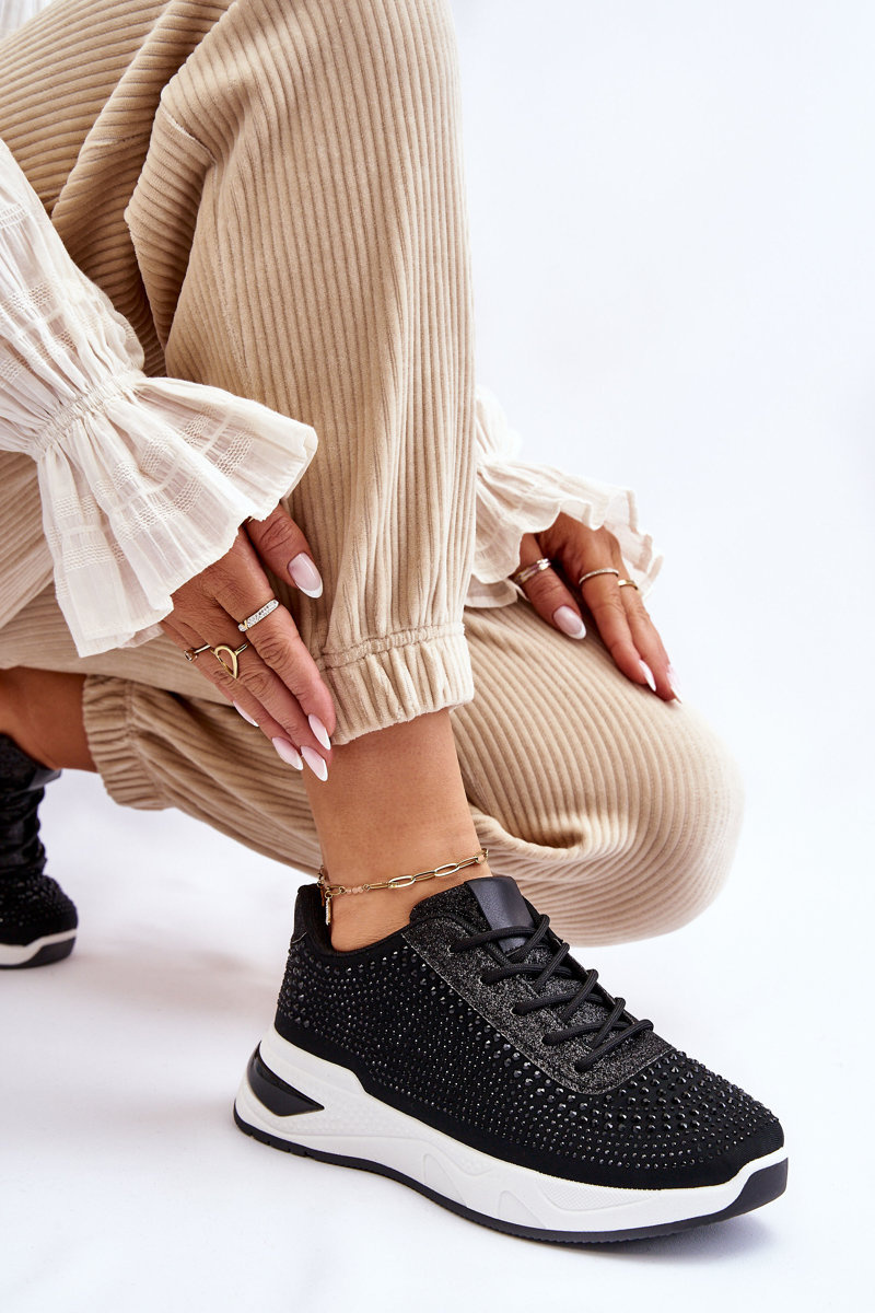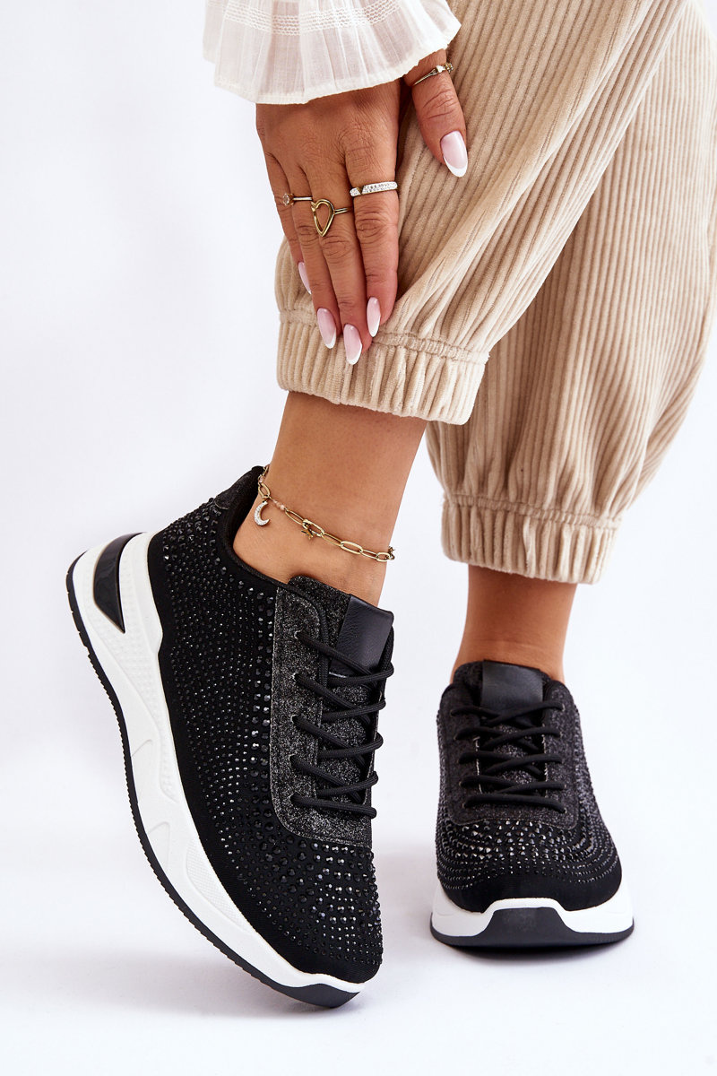Класичне, жіноче спортивне взуття виготовляється з текстильного матеріалу. Крім того, вони мають прикраси у вигляді страз, що імітують циркони. Їх поставили на перон. Модель має класичну шнурівку. М'яка вставка з матеріалу забезпечить комфорт під час використання. Ви обов'язково повинні їх мати! Обираючи розмір, орієнтуйтеся на таблицю розмірів.