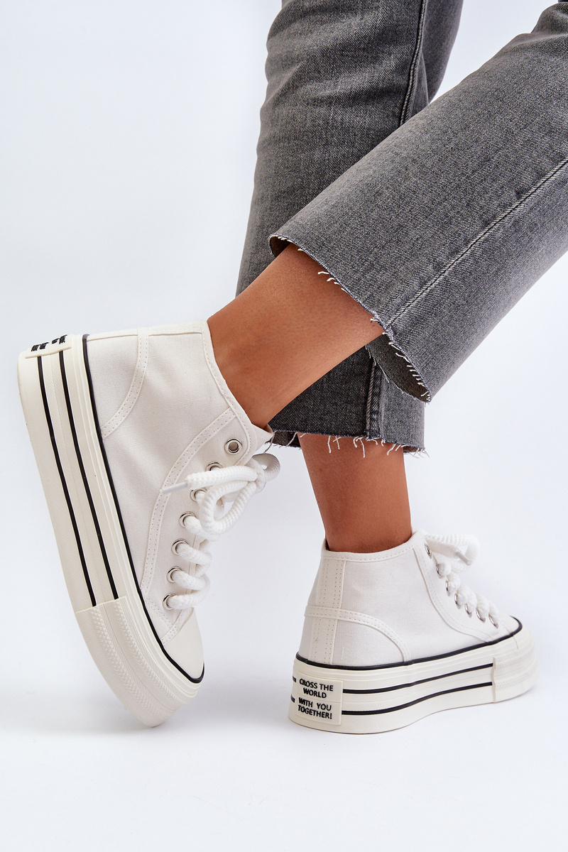 Жіночі кросівки з текстилю. Масивна гумова платформа додає модний вигляд і забезпечує стабільність під час ходьби. Заокруглені пальці та класична шнурівка роблять їх універсальним доповненням до багатьох повсякденних образів. Незалежно від того, збираєтеся ви прогулятися містом або зустрітися з друзями, ці кросівки стануть відмінним вибором. Обираючи розмір, орієнтуйтеся на таблицю розмірів.