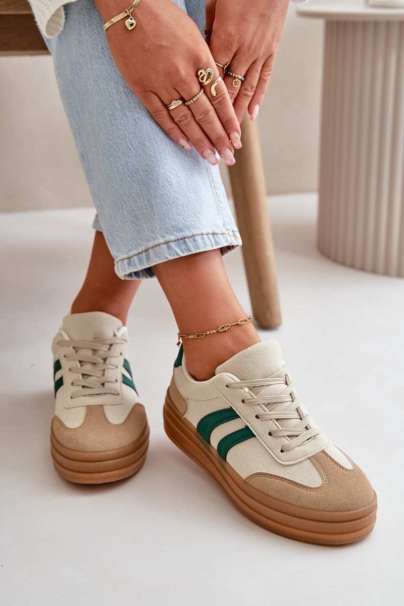 Жіночі кросівки на платформі в бежево-зеленому кольорі Nesonice