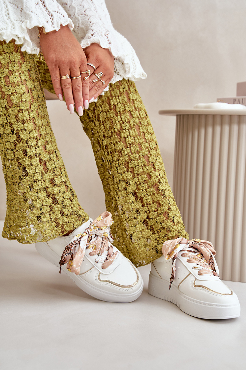 Жіночі кросівки на платформі з декоративною шнурівкою білого кольору Mistra