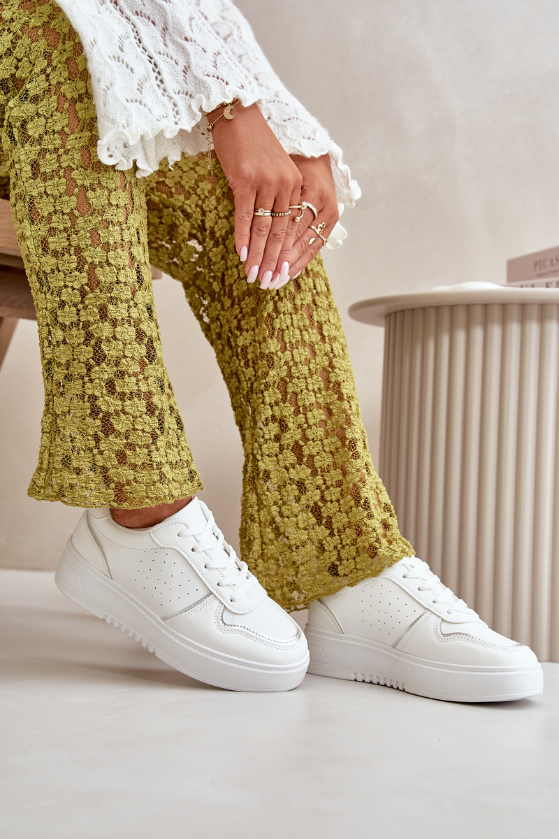 Жіночі кросівки на платформі з декоративною шнурівкою білого кольору Mistra