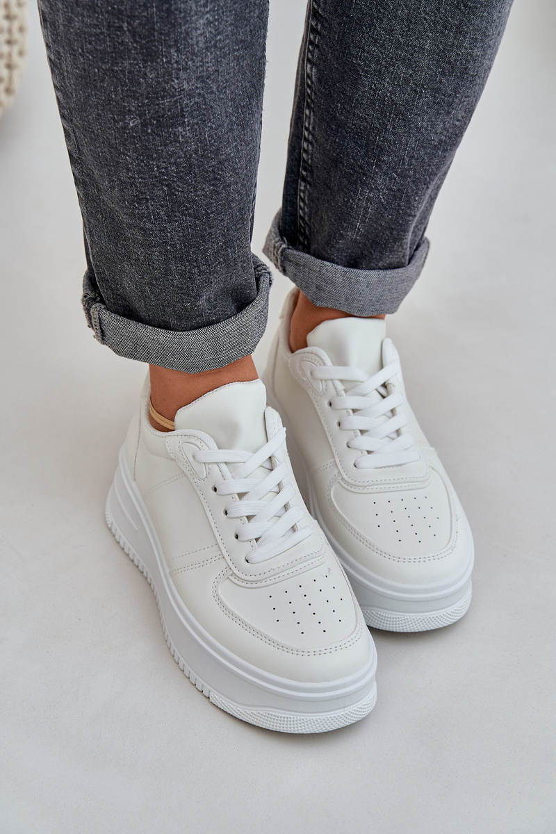 Жіночі кросівки на платформі з декоративною шнурівкою білого кольору Mistra