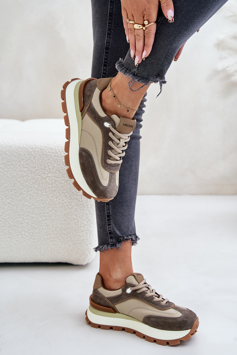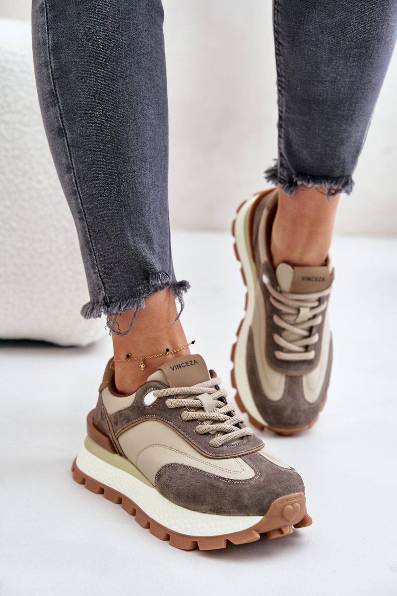 Жіночі кросівки на платформі з натуральної шкіри бежеві Vinceza 41465