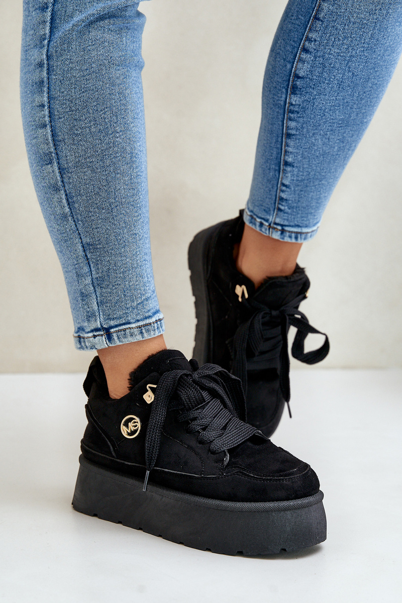 Жіночі кросівки на платформі з флісовою підкладкою, чорні Velarisea