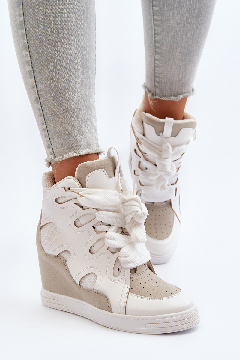 Жіночі кросівки на танкетці білі Leoppa