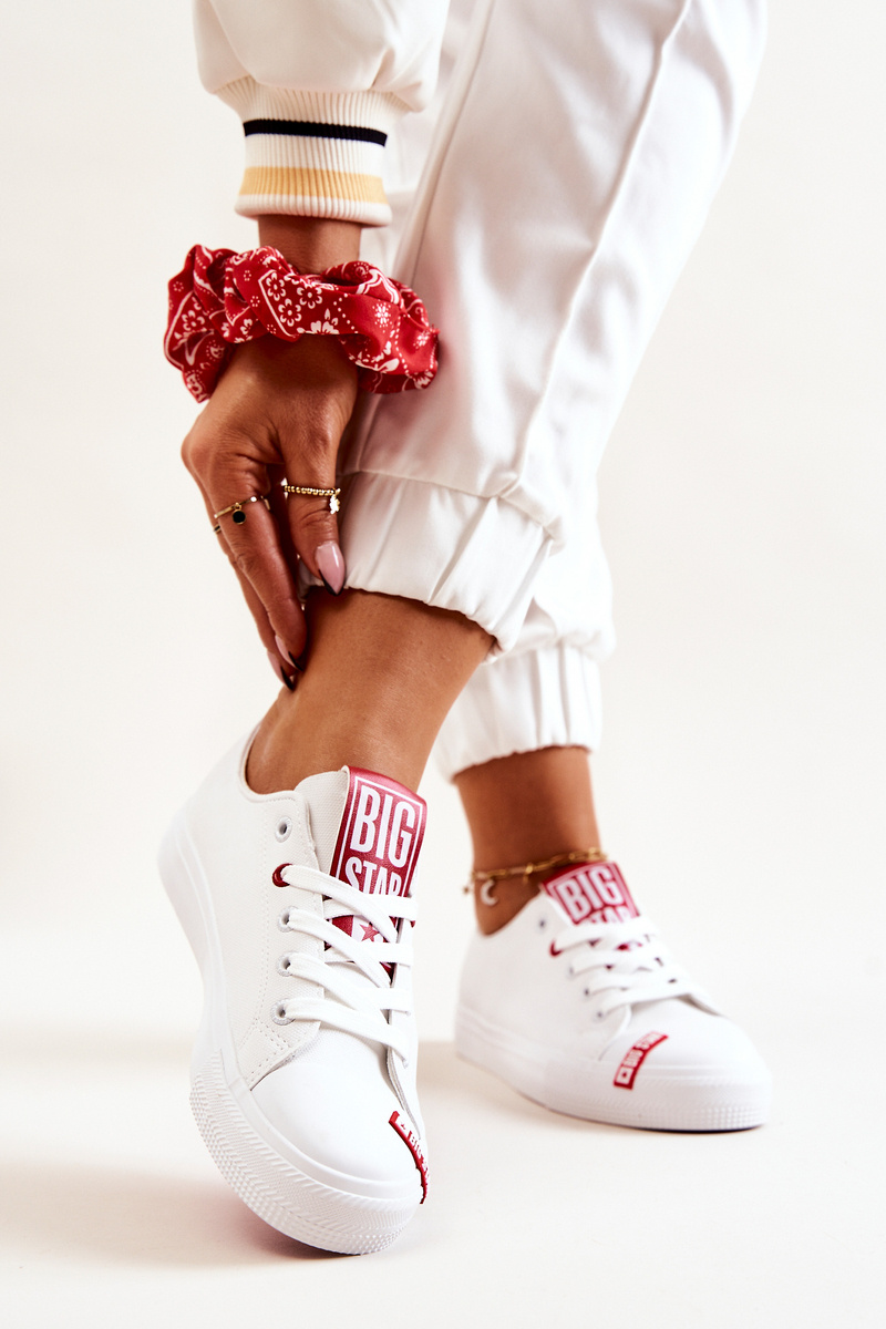 Спортивне взуття польського бренду BIG STAR виготовлено з пластику. Вони мають гумові носки та декоративну емблему на передній та задній частині взуття. Зав'язка дає можливість підігнати їх під розмір ноги. Матеріал устілки. Нековзна підошва забезпечує стабільність при кожному кроці. Під час вибору розміру зверніться до таблиці розмірів.