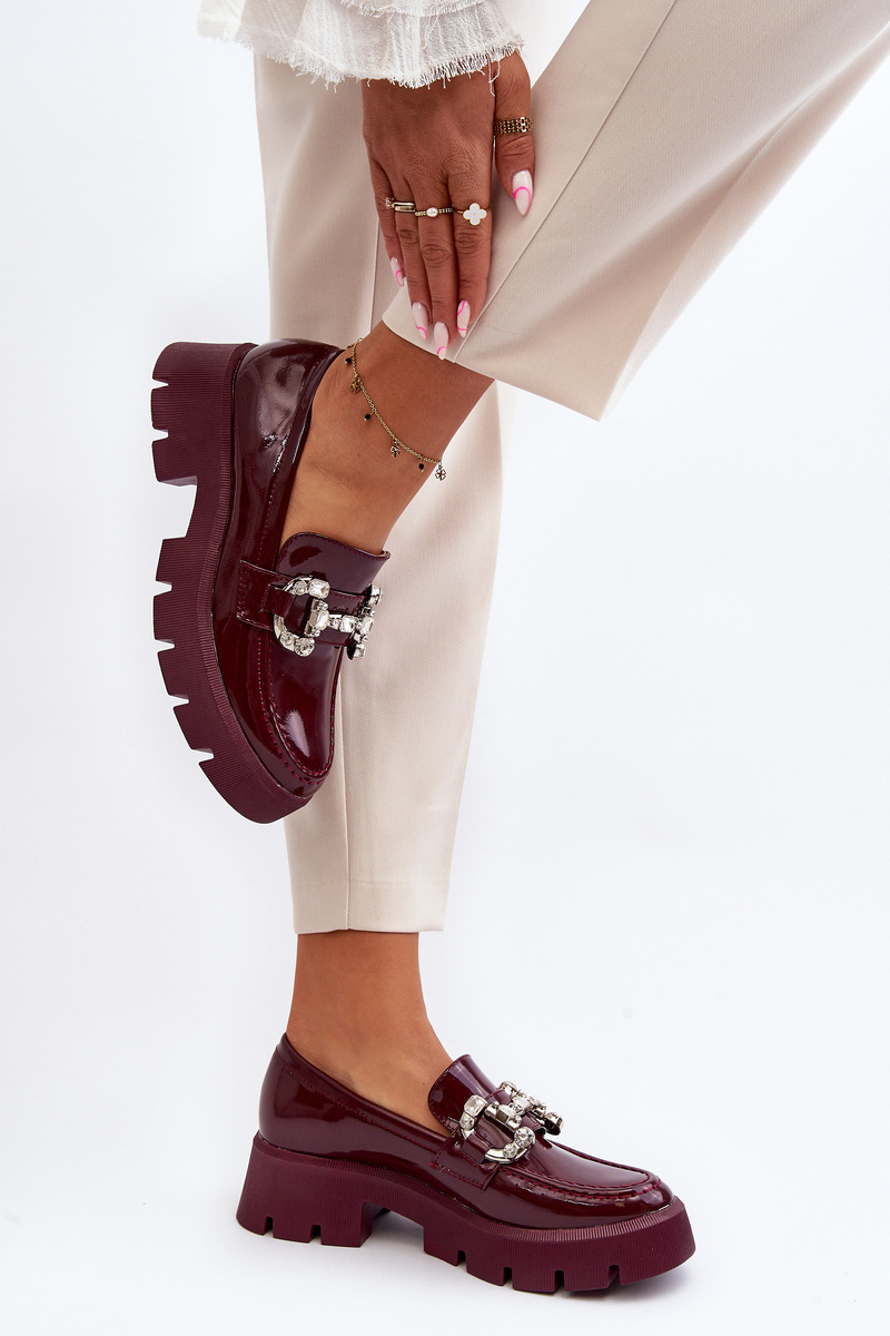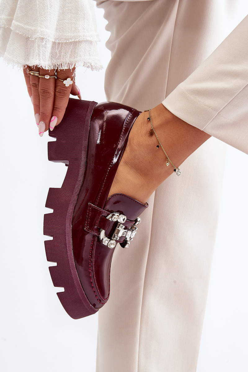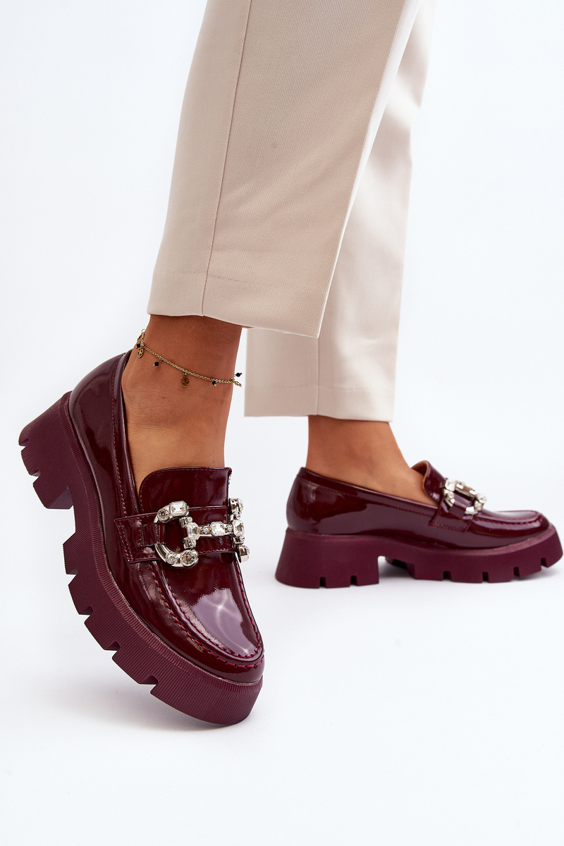 Жіночі лаковані лофери з декором бордовий Arsaba
