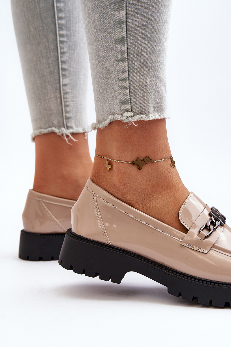 Жіночі лаковані лофери на плоскій підошві бежеві Ezoma