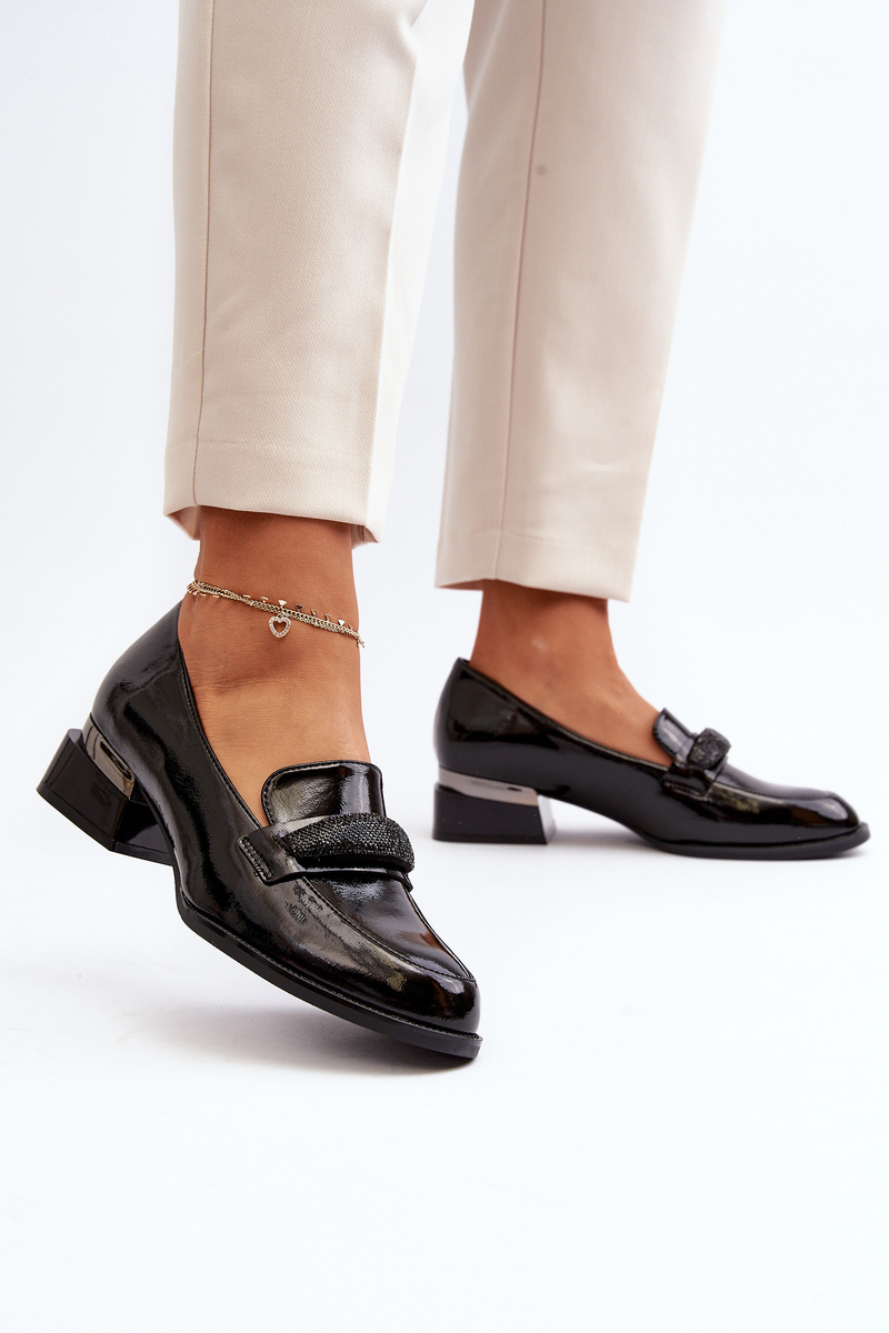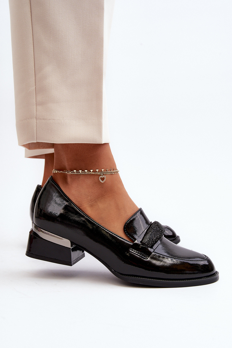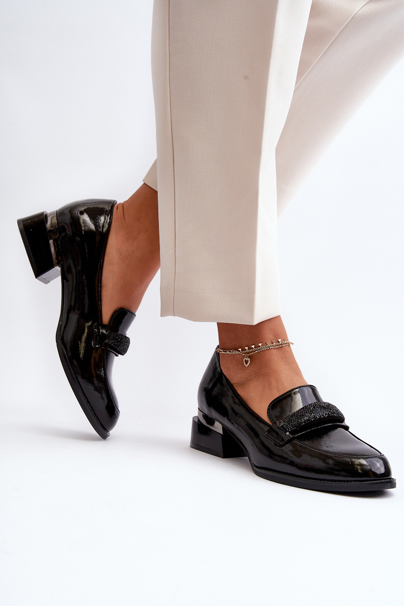 Елегантні жіночі туфлі на низькому каблуці з дзеркальним елементом. Виготовлений з еко шкіри. Заокруглені пальці. Декоративний ремінець спереду. Устілка з натуральної шкіри забезпечує комфорт. Ідеально підходить для багатьох весняних укладок! Обираючи розмір, орієнтуйтеся на таблицю розмірів.