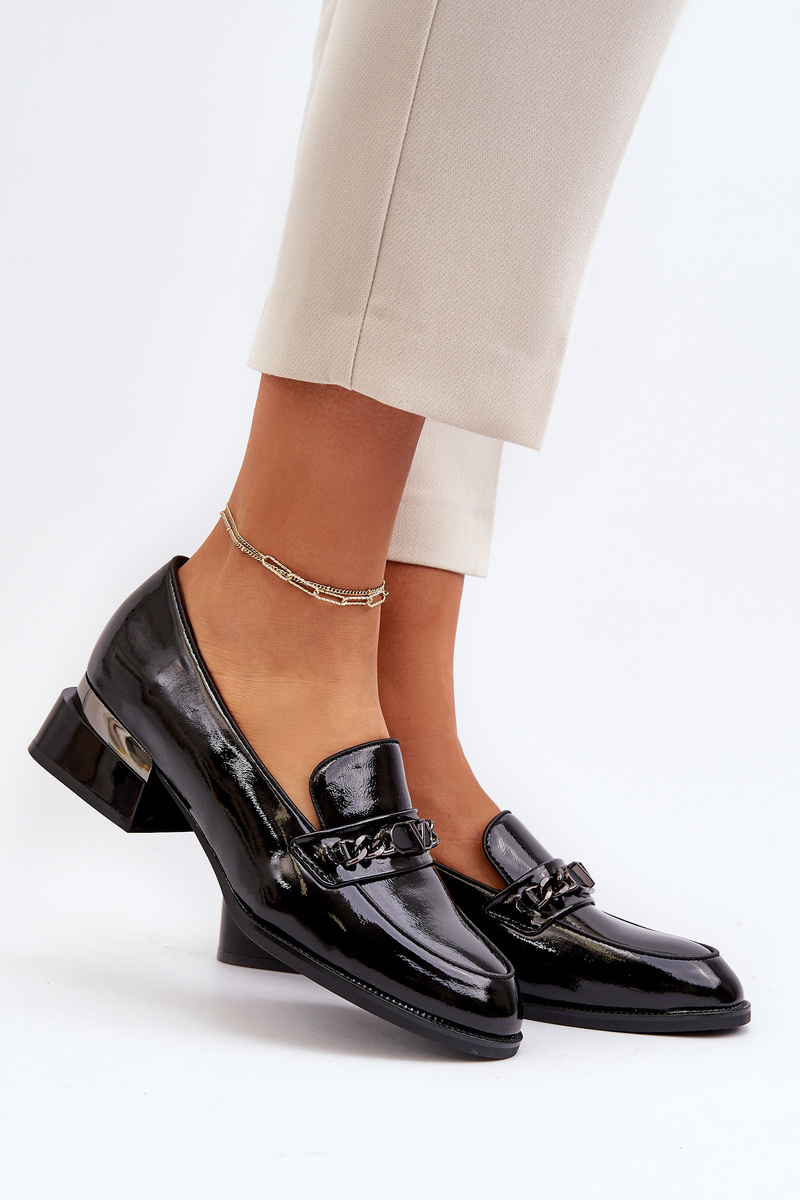 Жіночі лаковані туфлі на низькому каблуці чорного кольору Albreide