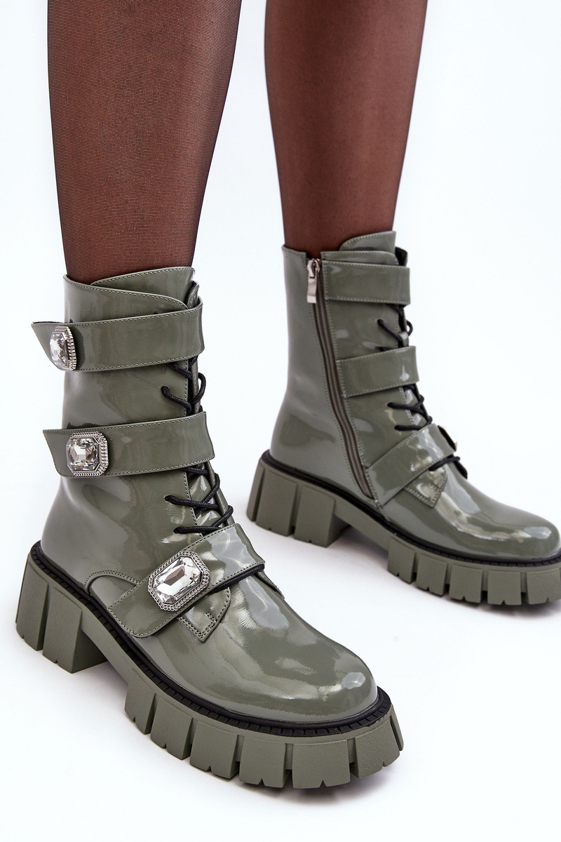 Жіночі лаковані чоботи зелені SBarski MR870-61