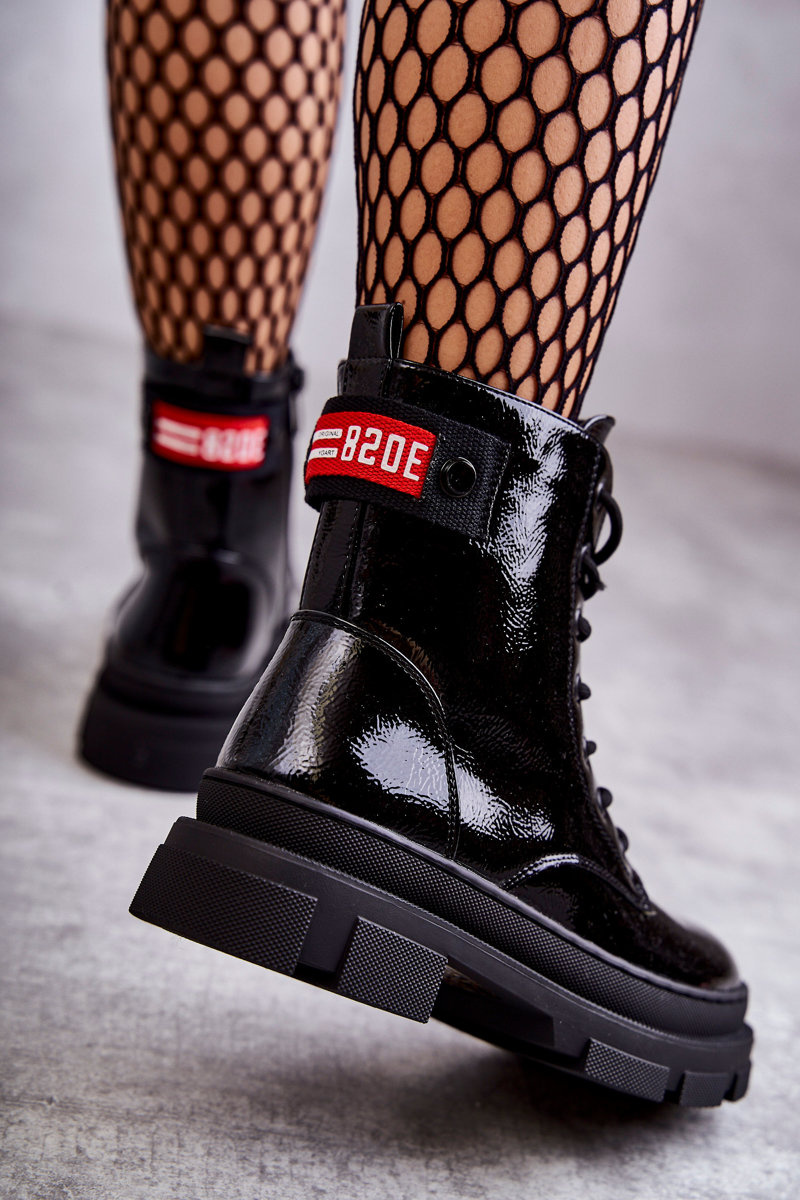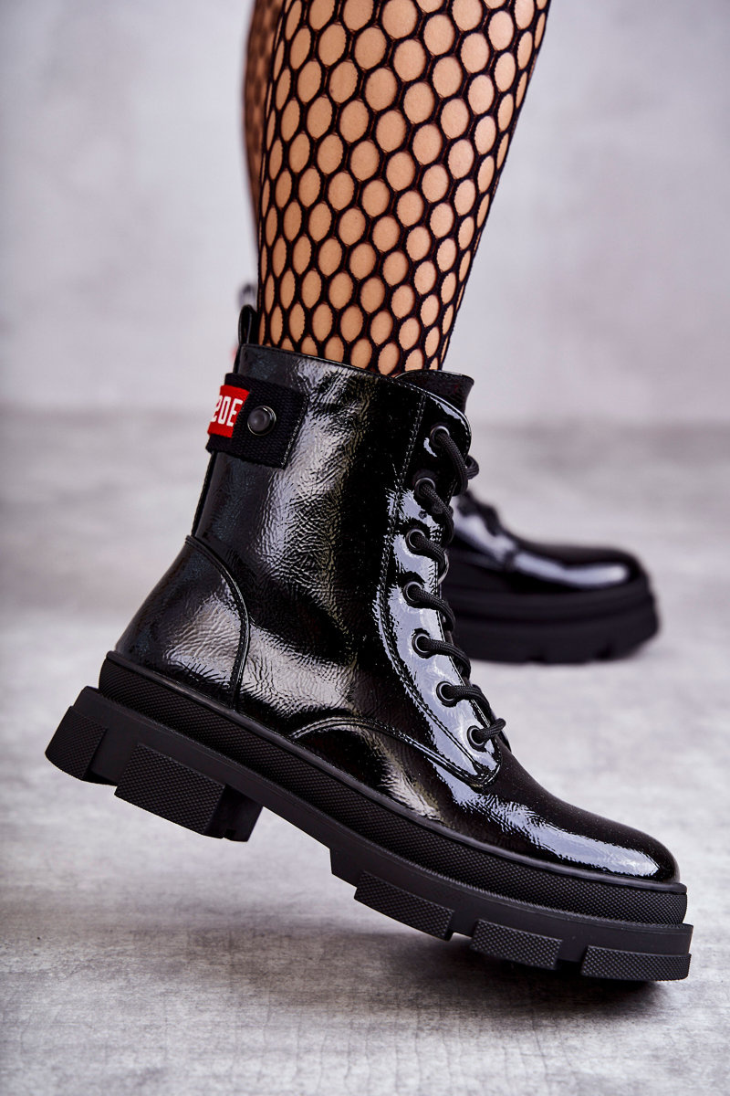 Жіночі лаковані чоботи на шнурівці робочі чорні Conny