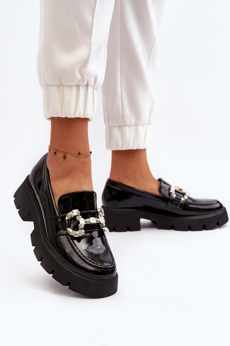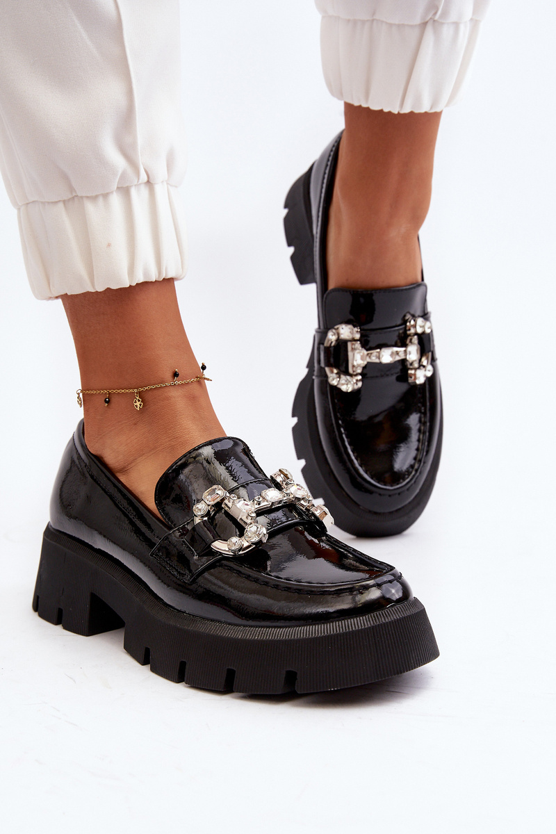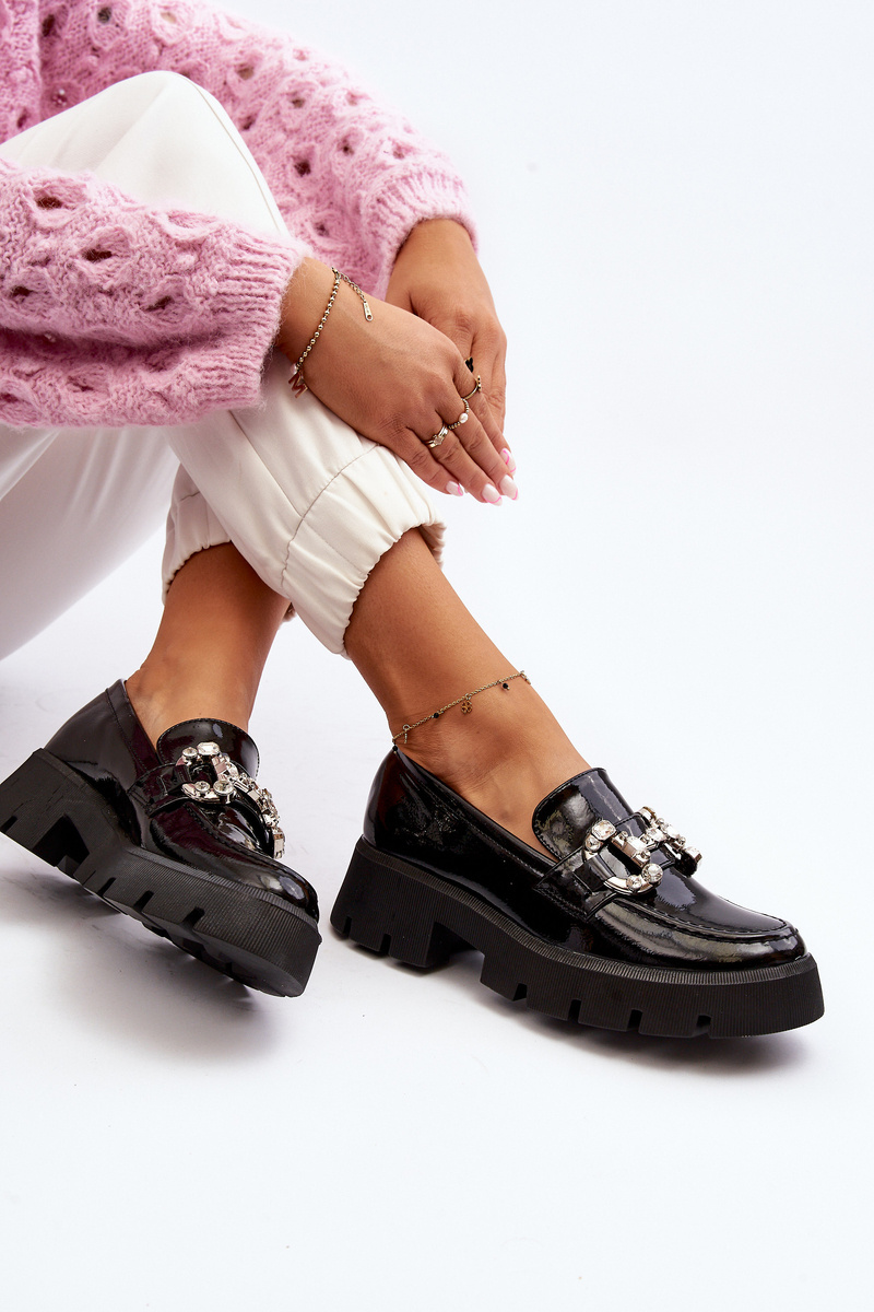 Жіночі лофери виготовлені з еко шкіри. Вони встановлювалися на платформу і плоский каблук з виїмками. Підошва виготовлена ​​з пластику. М'яка устілка з еко шкіри забезпечить комфортне використання. Лофери мають декоративний елемент спереду. Чудова модель для багатьох елегантних і повсякденних стилізацій. При виборі розміру орієнтуйтеся на таблицю розмірів.