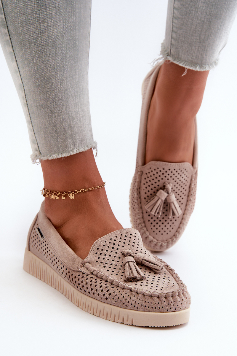 Жіночі мокасини з еко замші. Встановити на платформу. Заокруглені пальці. Спереду прикрашена дрібною бахромою. Дана модель має м'яку шкіряну устілку, яка забезпечить комфорт під час носіння. Класичний дизайн, який можна поєднувати з повсякденним та елегантним стилем. Обираючи розмір, орієнтуйтеся на таблицю розмірів.