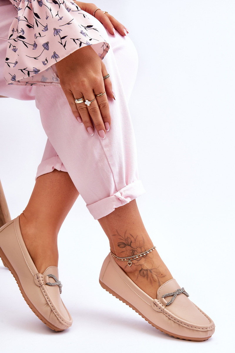 Жіночі лофери без шнурівки з блискучими прикрасами, бежевого кольору