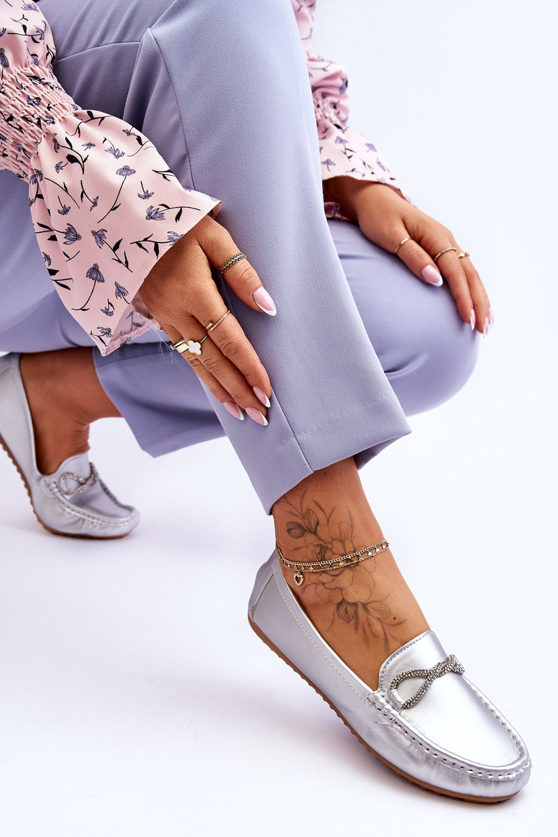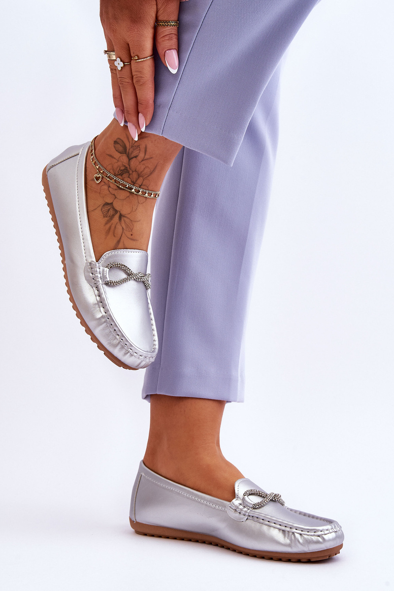 Жіночі лофери без шнурівки з блискучими прикрасами, сріблясті