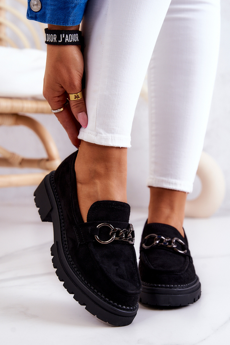 Чудове взуття Laura Fiore у стилі лоферів! Взуття виготовлено з якісної екошкіри замші. Характерна прикраса у вигляді ланцюжка змусить нас створити з ними багато оригінальних стилів. Мають витончену платформу і плоский каблук. М'яка устілка з натуральної шкіри забезпечить комфорт під час використання взуття. При виборі розміру скористайтеся таблицею розмірів.