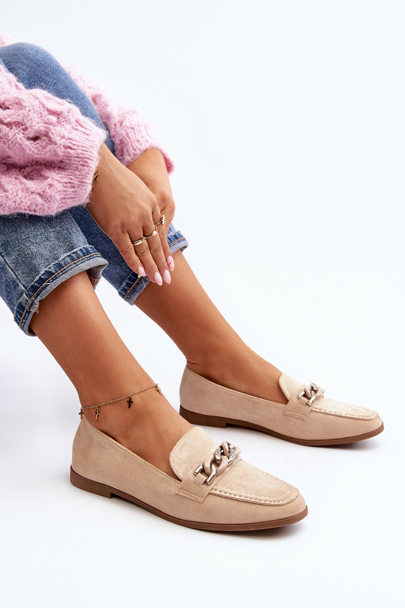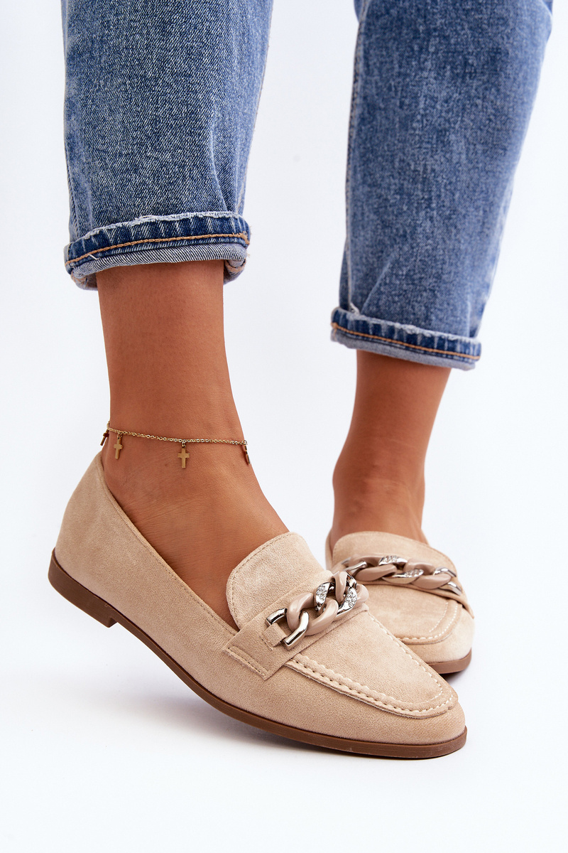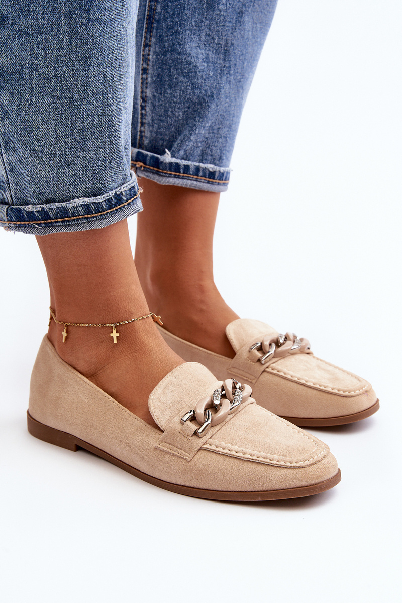 Жіночі лофери з ланцюжком бежевого кольору Ambrise