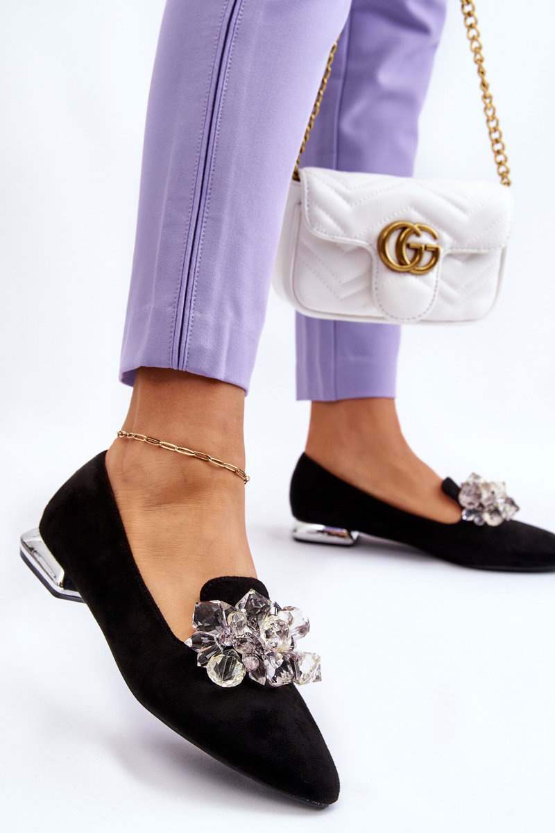 Жіночі лофери з прикрасами на плоскій підошві Black Sloane