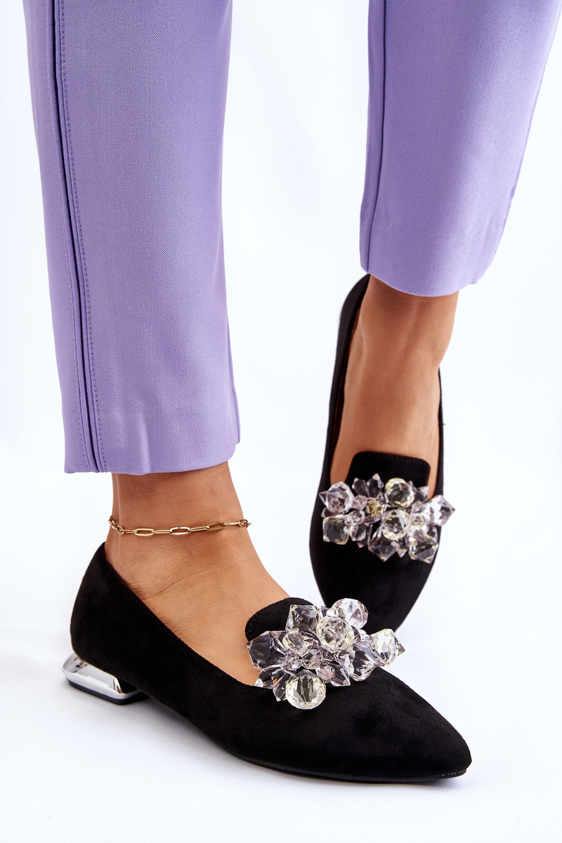 Жіночі лофери виготовлені з приємної на дотик еко замші. На лицьовій стороні є декоративна імітація кристалів. Лофери були встановлені на плоскій каблуці. Каблук злегка посилений, а устілка виконана з екошкіри, що дозволяє комфортно використовувати взуття. Ці елегантні лофери - ідеальна модель для багатьох стилів! Обираючи розмір, зверніться до таблиці розмірів.