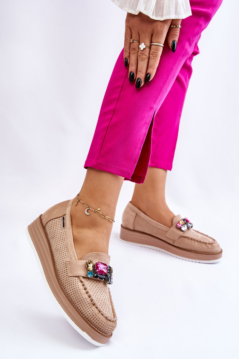Жіночі лофери на платформі з прикрасами бежеві Adelyn