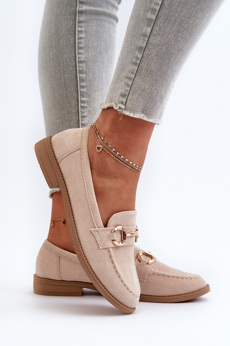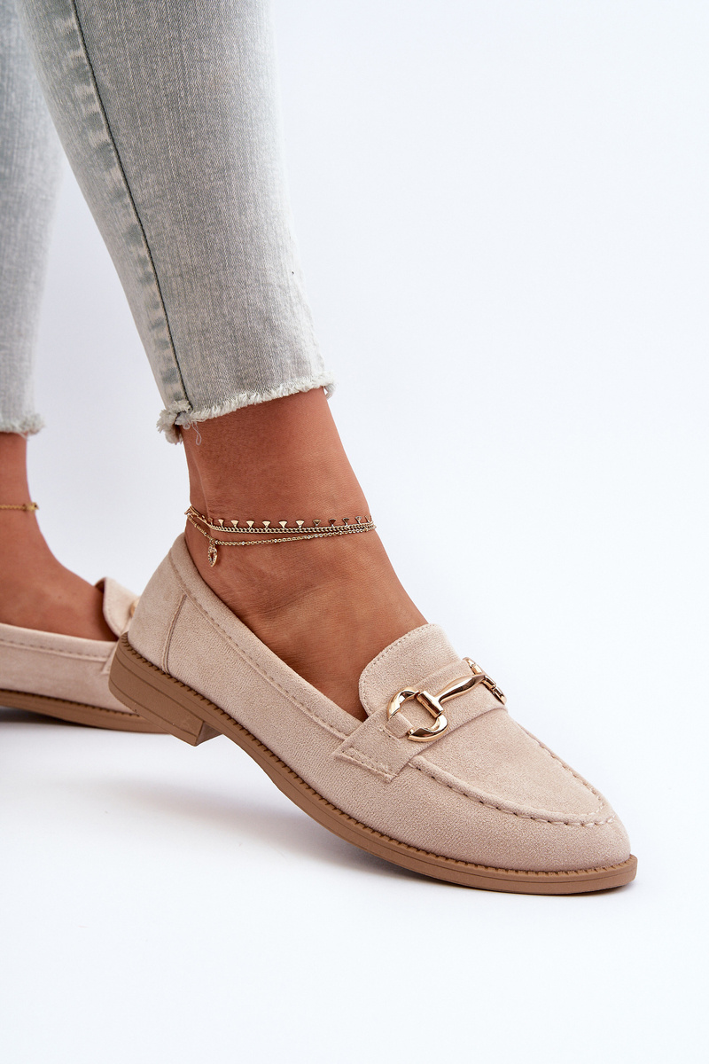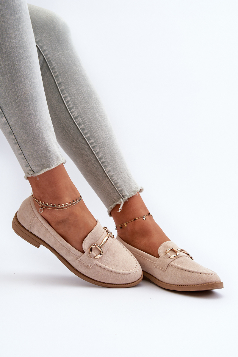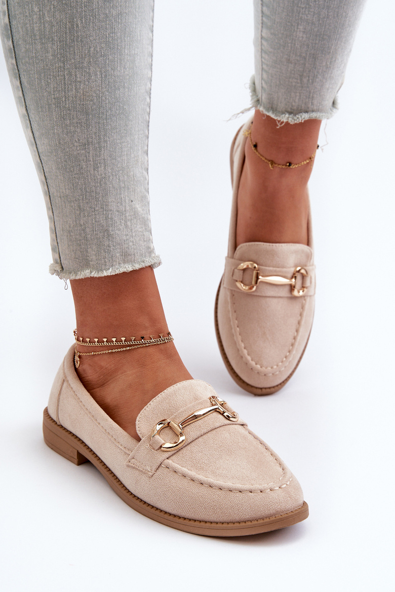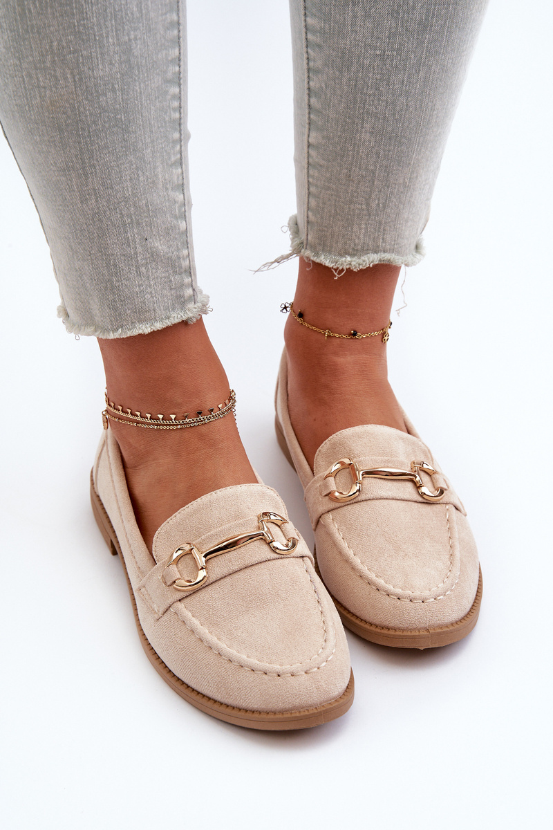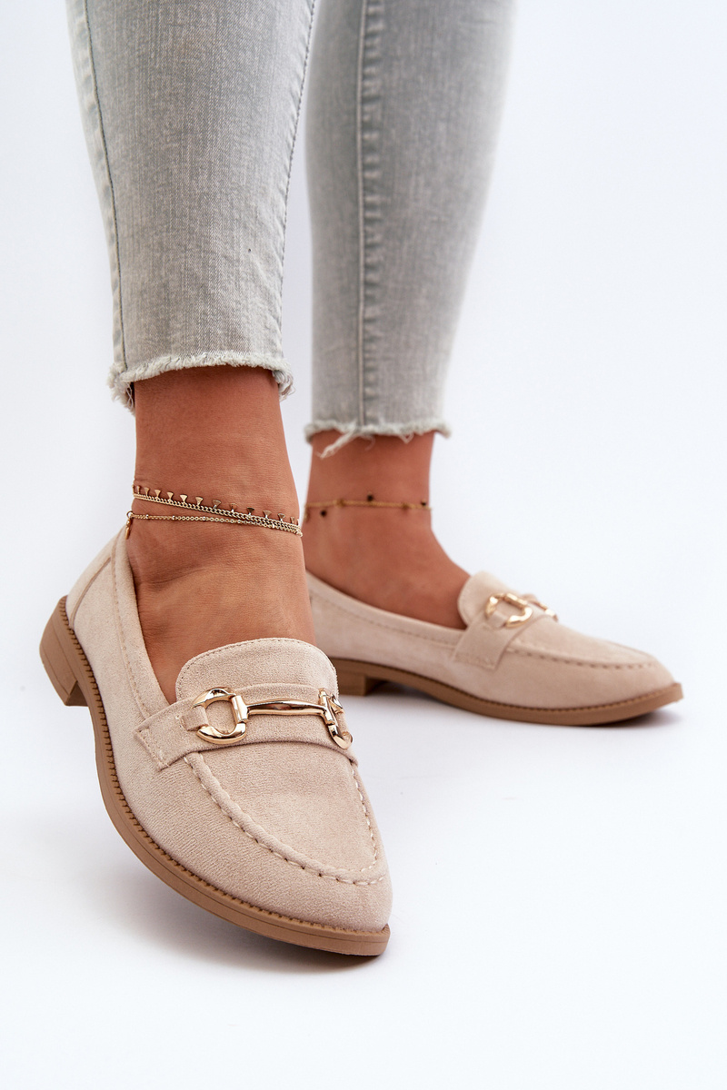 Жіночі лофери на плоскій підошві з прикрасами бежевий авіол