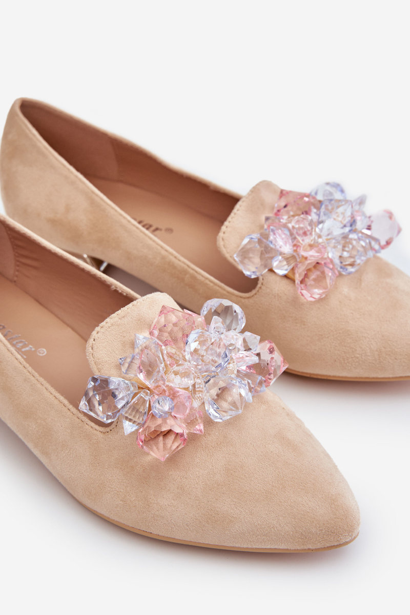 Жіночі лофери на плоскій підошві з прикрасами бежеві Sloane