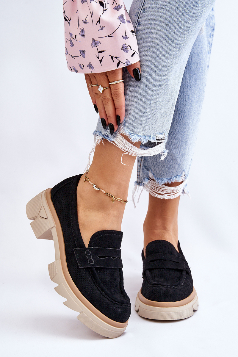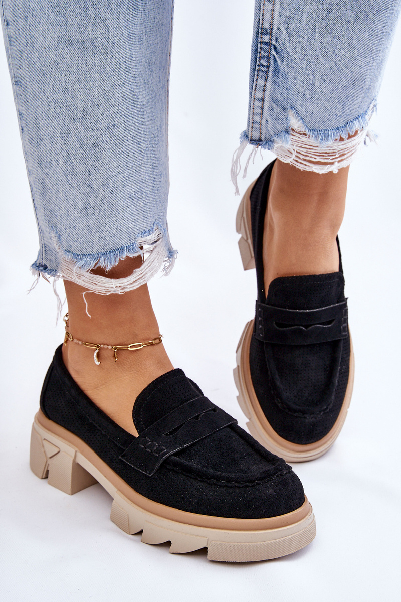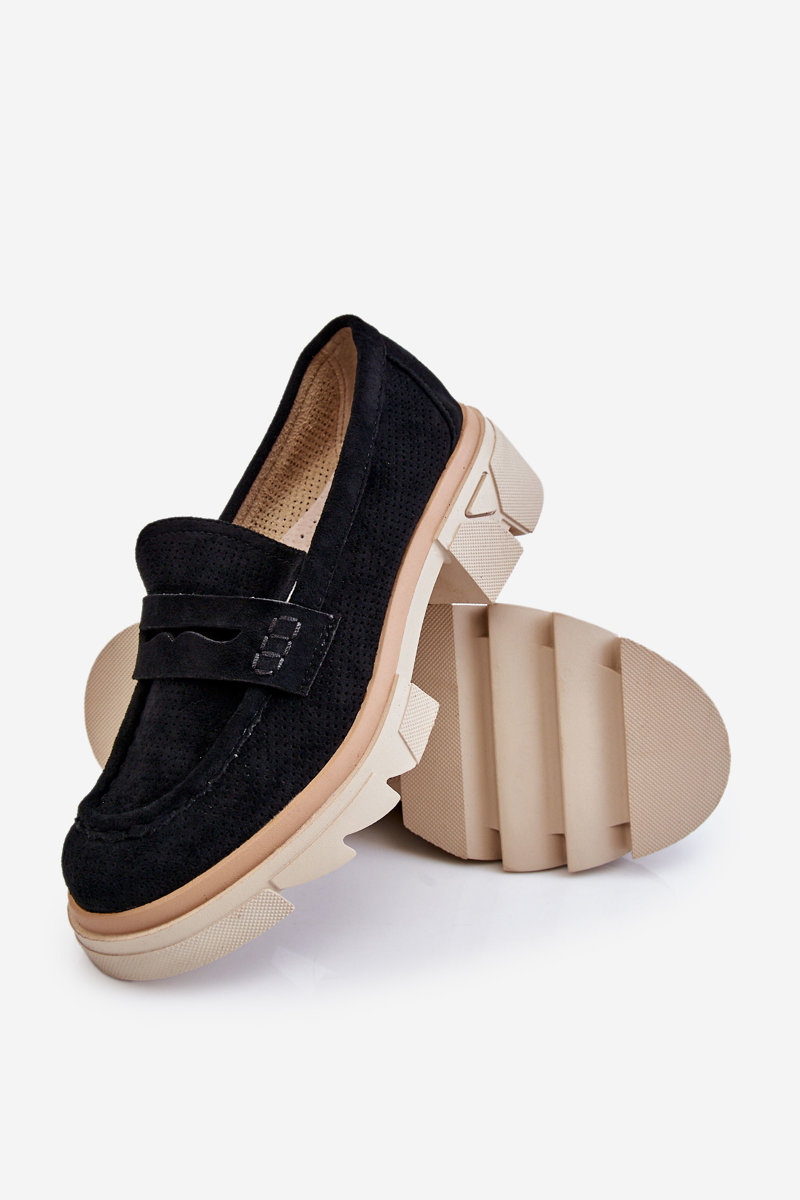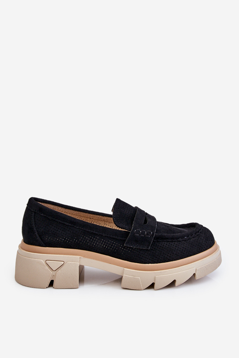 Жіночі лофери в стилі мокасини на масивному плоскому каблуці та платформі. Виготовлений з матеріалу, що нагадує еко замшу. М'яка устілка з натуральної шкіри забезпечить комфорт під час використання. Верх в ажурному візерунку. Застібка посилена. Чудова модель для багатьох стилів! При виборі розміру орієнтуйтеся на таблицю розмірів.