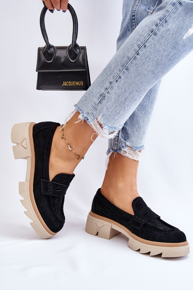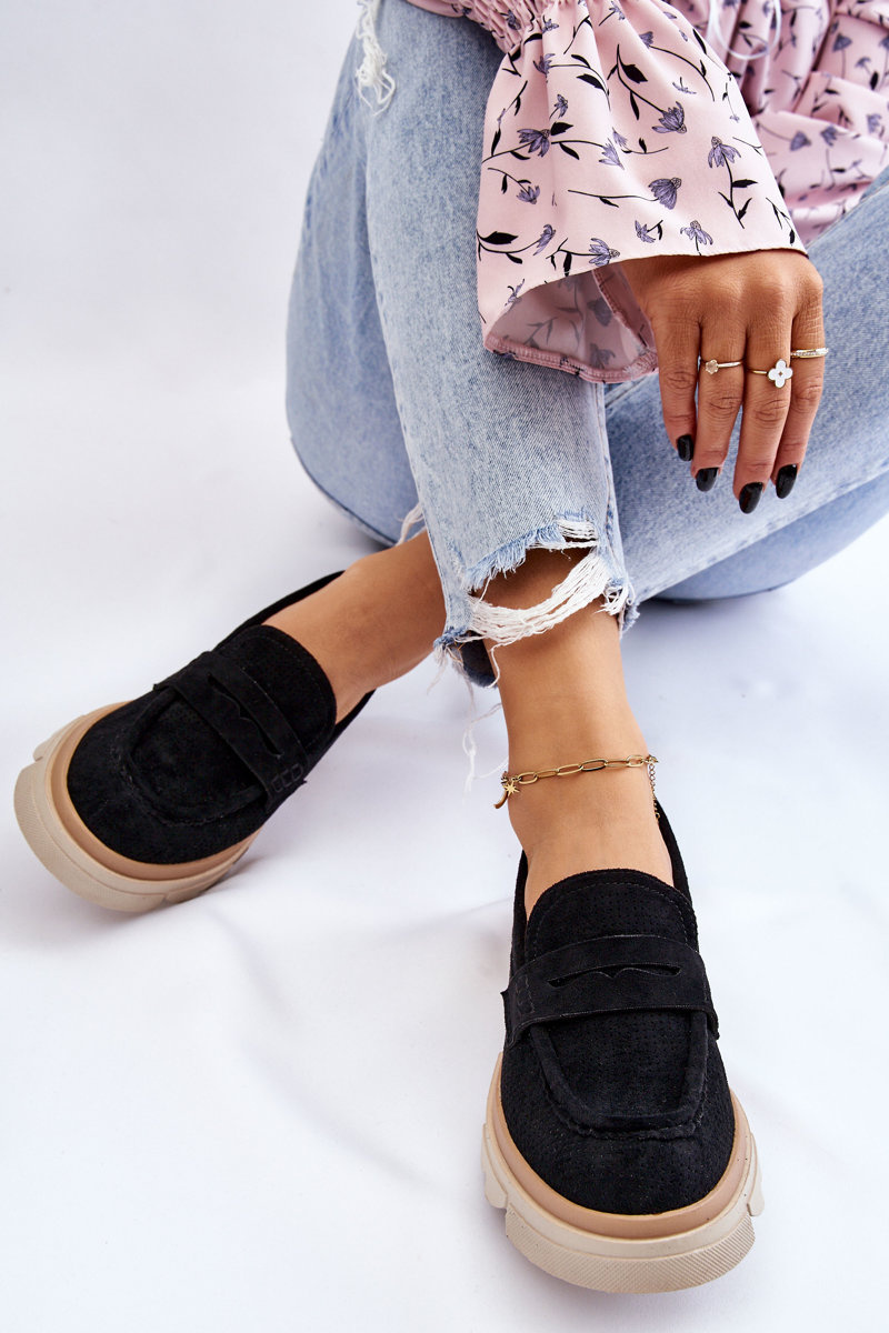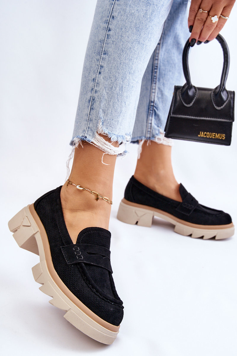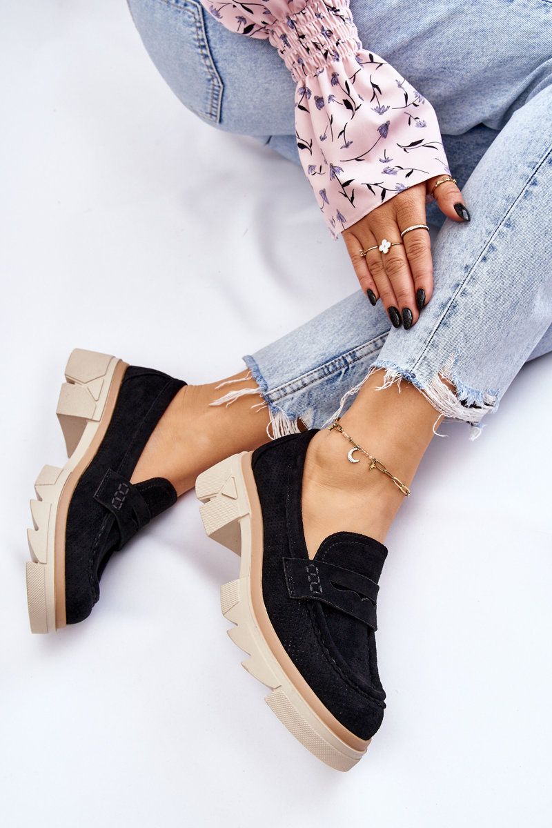 Жіночі лофери в стилі мокасини на масивному плоскому каблуці та платформі. Виготовлений з матеріалу, що нагадує еко замшу. М'яка устілка з натуральної шкіри забезпечить комфорт під час використання. Верх в ажурному візерунку. Застібка посилена. Чудова модель для багатьох стилів! При виборі розміру орієнтуйтеся на таблицю розмірів.